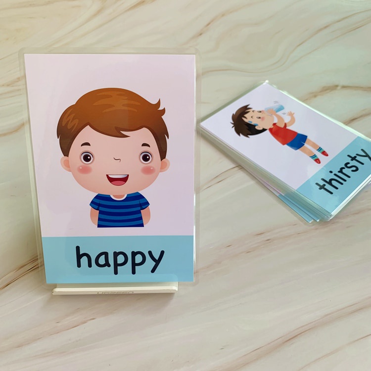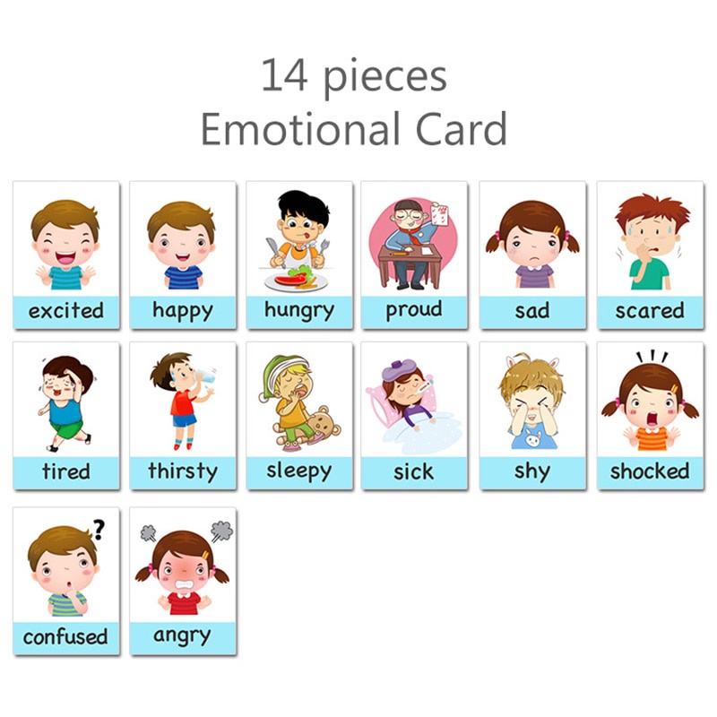 14pcs/Set Children English Learning Card Cartoon Emotional Flash Card Kindergarten Kindergarten Early Childhood Early Childhood Education Educational Card Toy