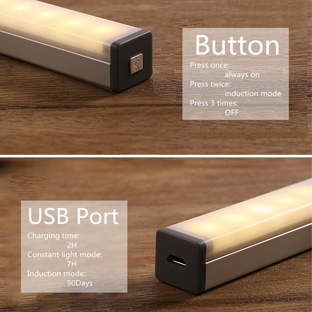 15/21/30/50cm Sensor LED Light Motion Sensor Night Light USB Charging, Used For Kitchen Cabinet Wall Lamp