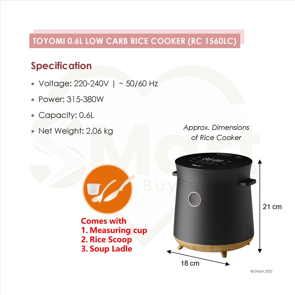 Toyomi 0.6L Low Carb Micro-Com Rice Cooker [RC 1506LC]
