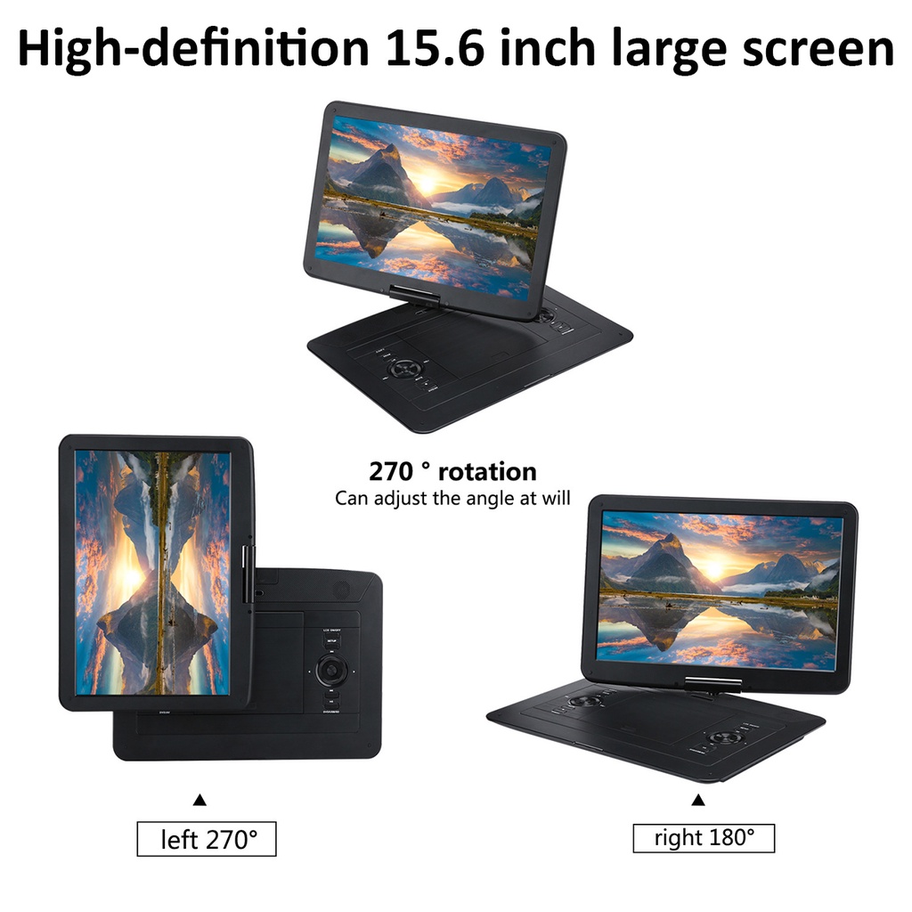 15.6'' Portable DVD Player HD VCD CD TV 270 Degree Rotation Screen HD Video Player Travel Mini DVD Playing Device