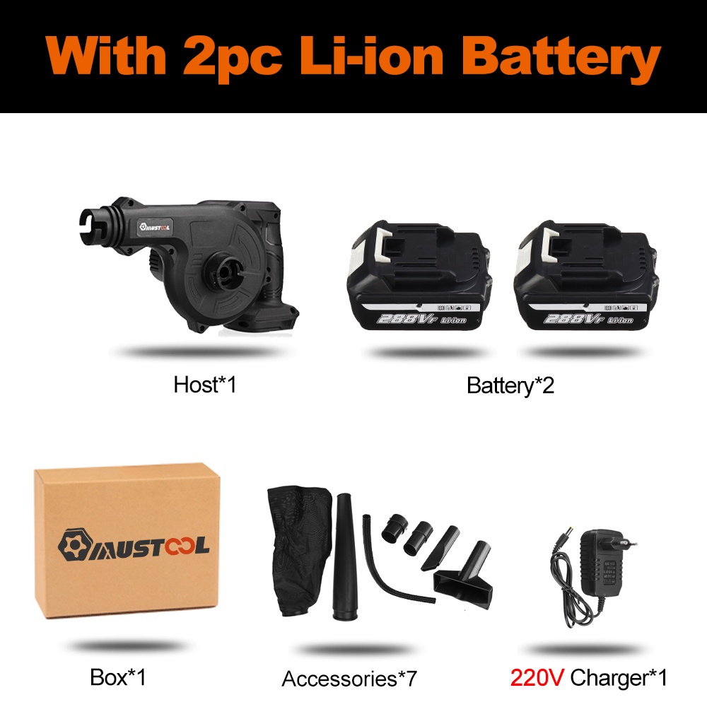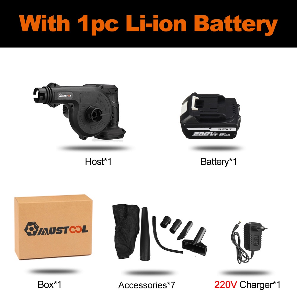 1500W 288VF Cordless Electric Air Blower Vacuum Blowing Suction Leaf PC Dust Cleaner Collector 2 In 1 For 8V Battery