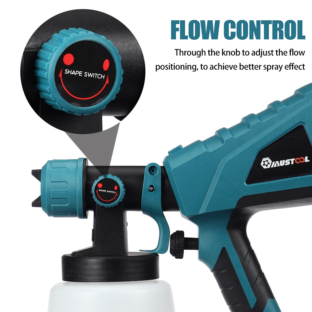 1500W 88VF 1000ml Electric Spray Guns 3 Nozzle Size Household Electric Paint Sprayer Flow Control Airbrush For 18V Battery