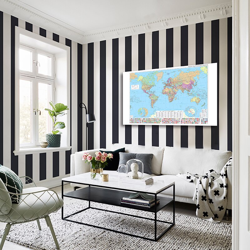 150x100cm Non-woven Spanish World Map With Flags The World Political Map Of Cities Foldable Painting For Culture