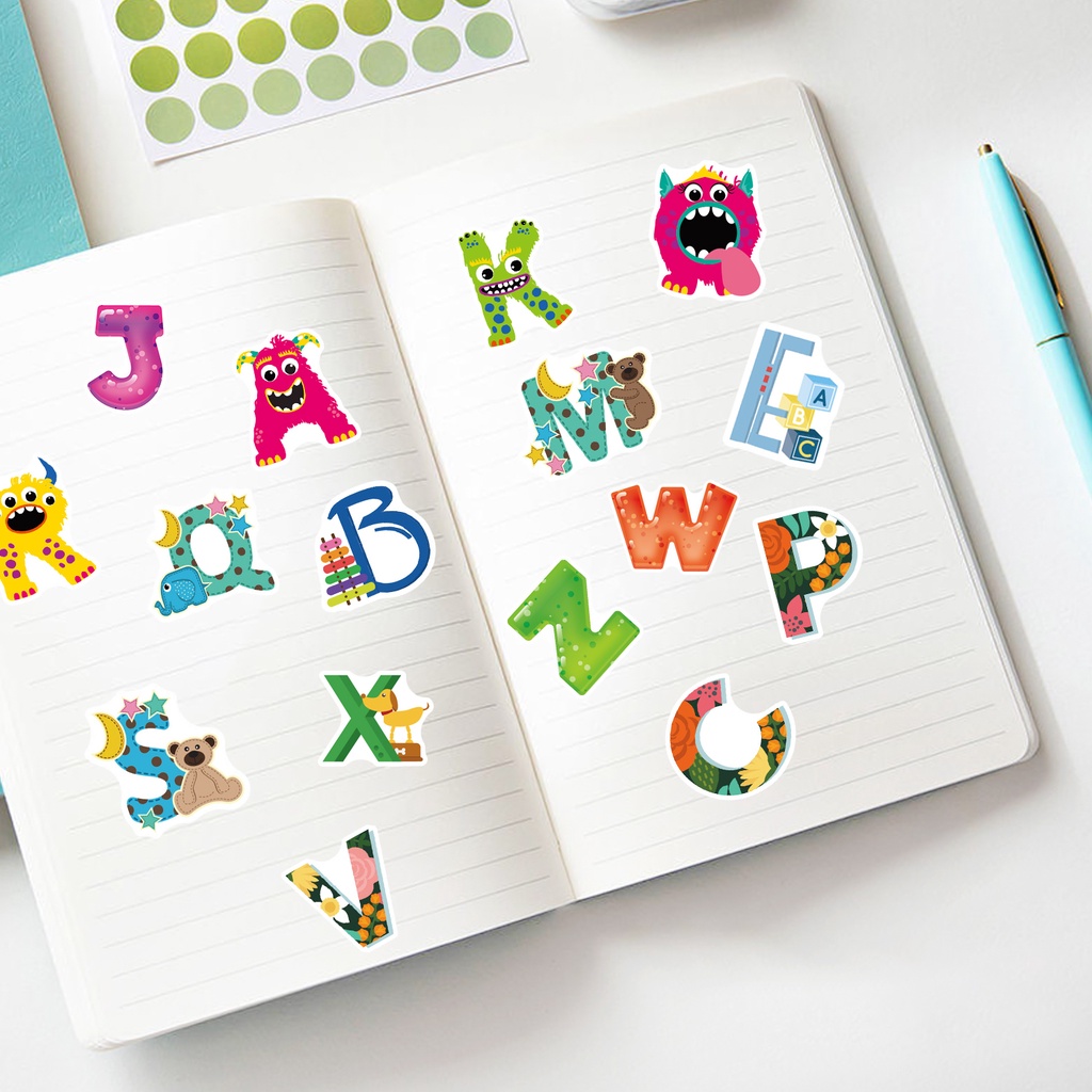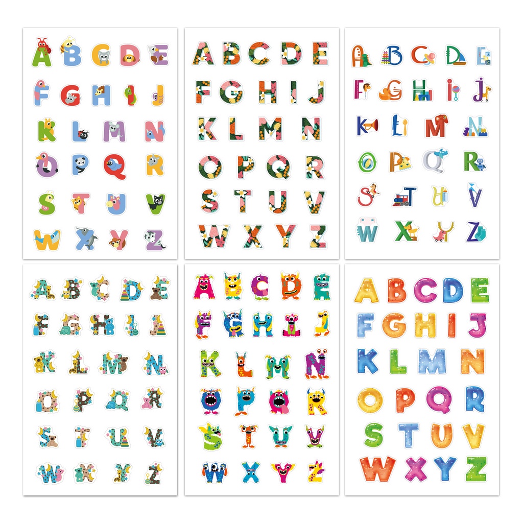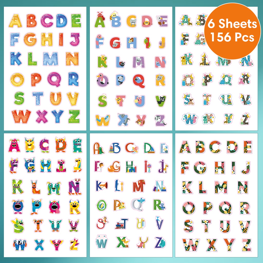 156Pcs/6Sheets Creative Cute English Alphabet Stickers for Kids Learning Toy Colorful Kawaii Cartoon Letter Computer Notebook Diary Decoration Sticker