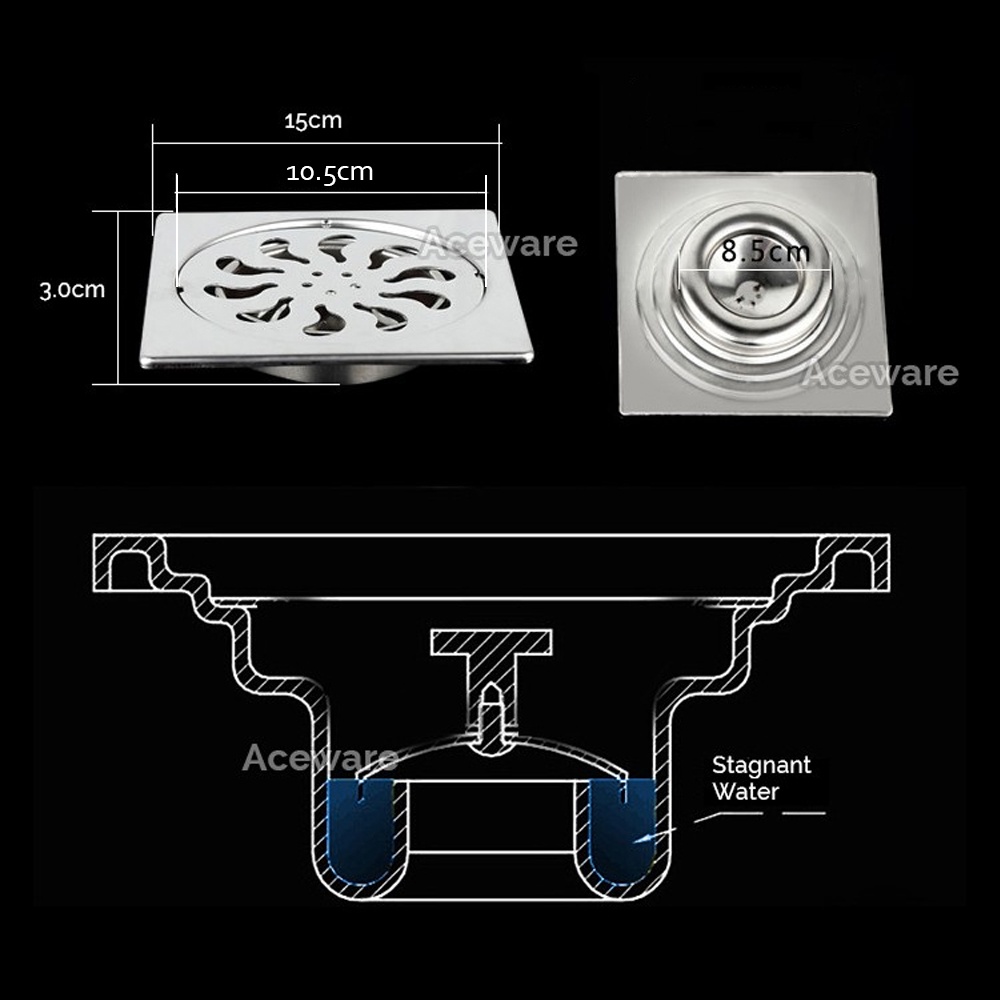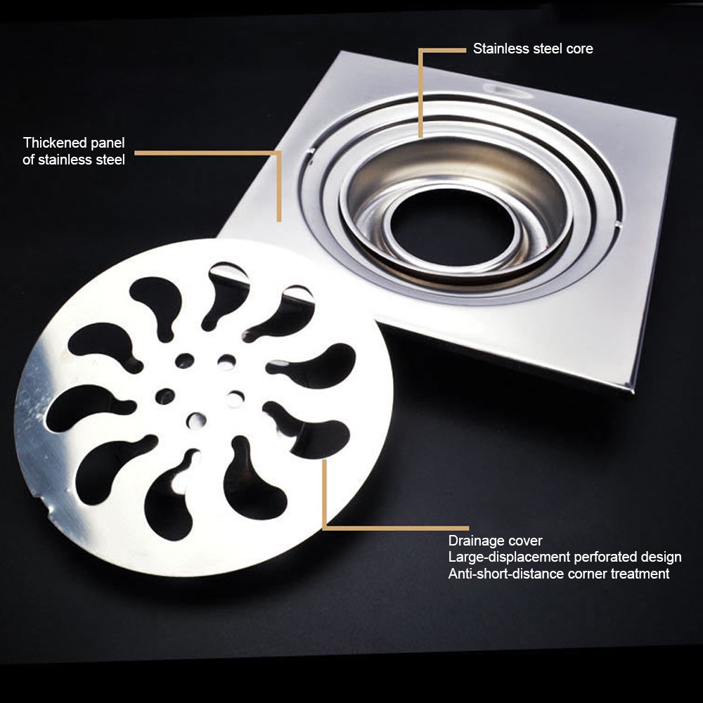 15CM X 15CM STAINLESS STEEL FLOOR TRAP COVER DRAIN FLOOR STRAINER GRATING WITH FILTER WATER ANTI ODOUR CP-600A STAINLESS STEEL STRAINER