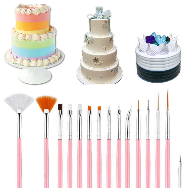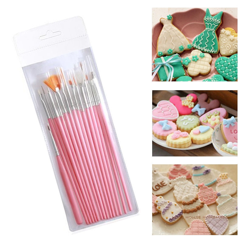 15Pcs/Set Fondant Cake Brush DIY Sugar Craft Baking Decorating Tools Cake Pen Brush for Fondant Painting Cookie Decoration Tools