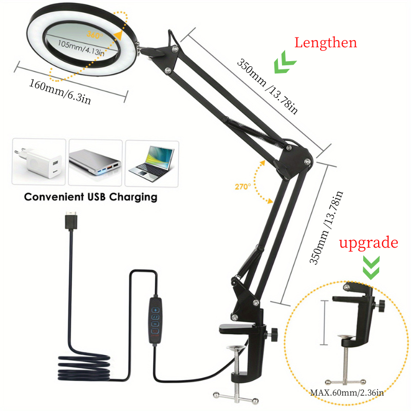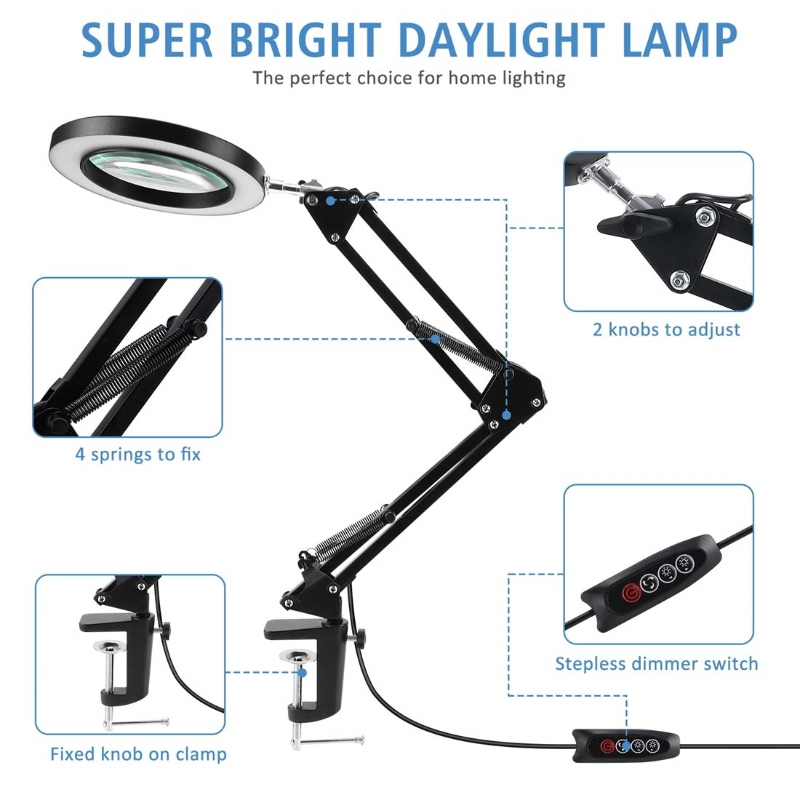15X LED Magnifying Glass With Light Adjustable Swivel Arm Reading Lamp/Lab Work Light/Cosmetologist Magnifier Lamp
