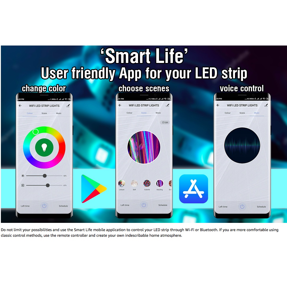 15m RGB LED Strip light 2835 12V Waterproof WiFi Flexible Diode Tape Ribbon Fita Tira LED Light Strips With Remote + Adapter Hari Raya