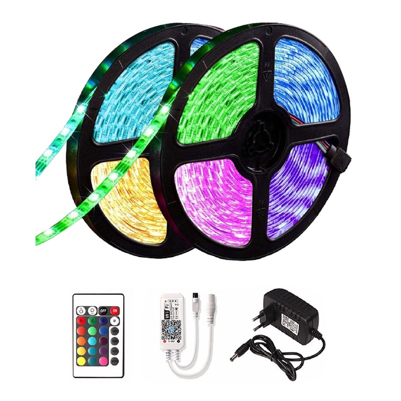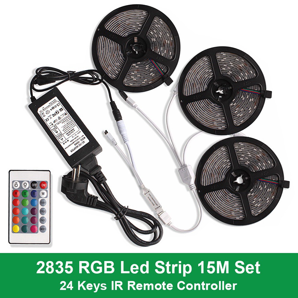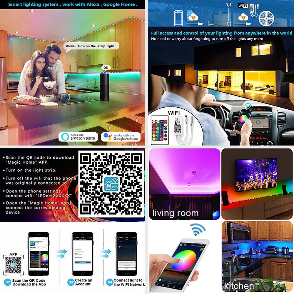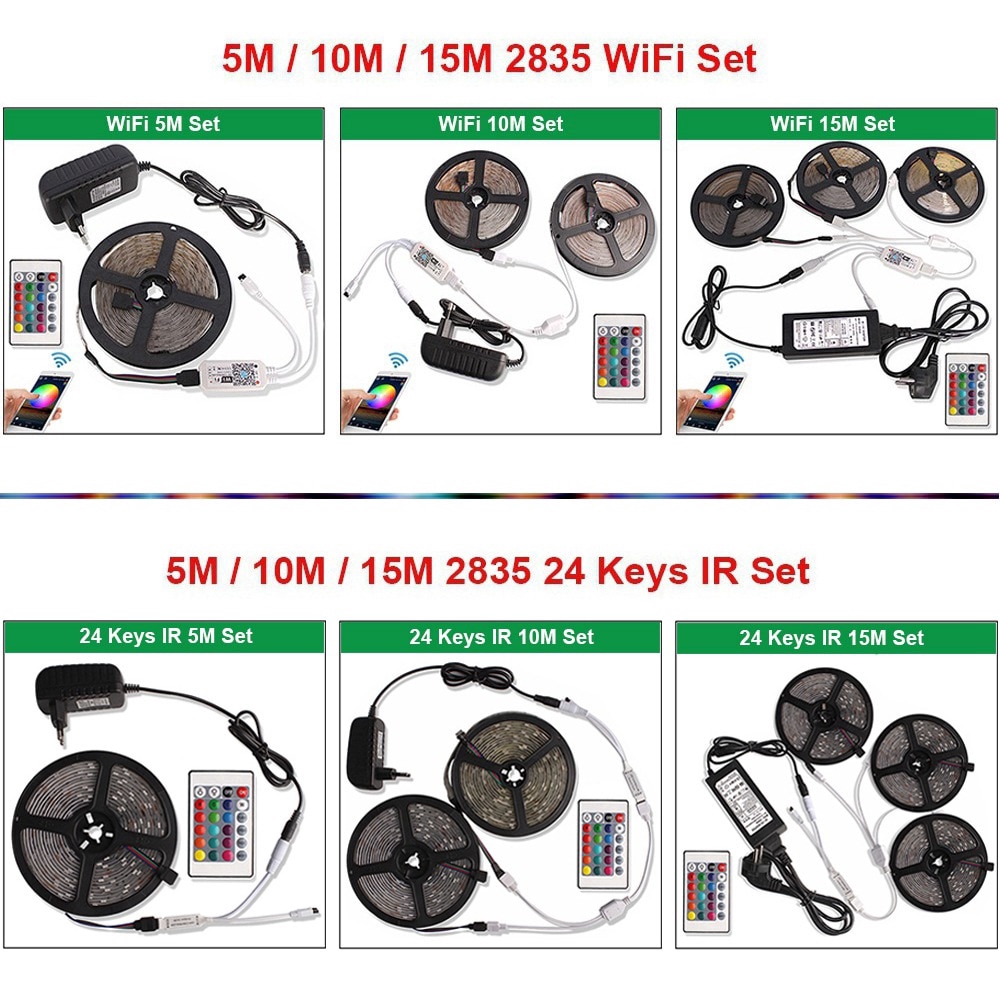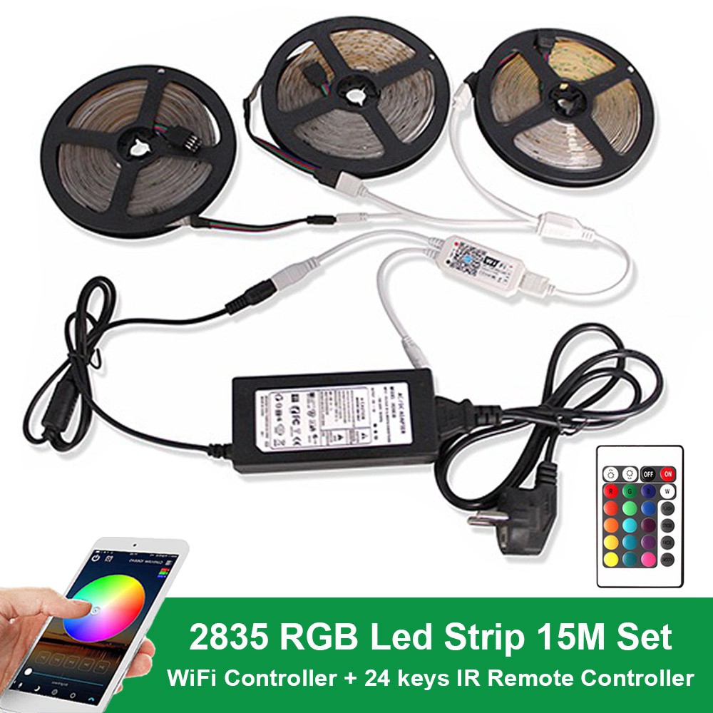 15m RGB LED Strip light 2835 12V Waterproof WiFi Flexible Diode Tape Ribbon Fita Tira LED Light Strips With Remote + Adapter Hari Raya