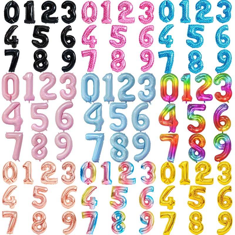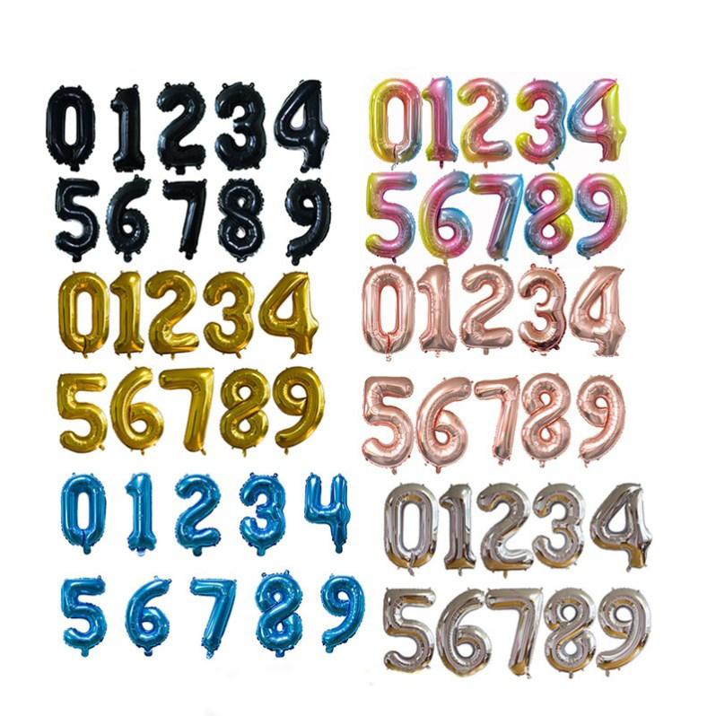 16 Inch Number Aluminum Foil Balloon 0-9 Bit Helium Balloons Happy Birthday Happy New Year Wedding Party Decoration Numbers balloons Gold Silver Red Gradient Colour