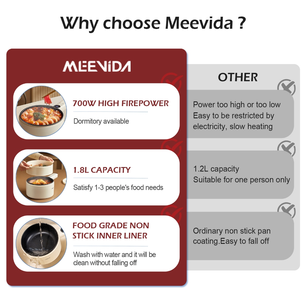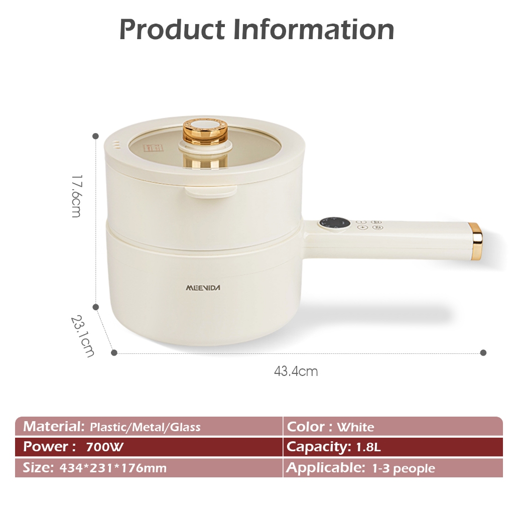 MEEVIDA🔔 1.8L Portable Mini Cooker Multi-Functional Pot Dormitory Hot Pot Electric Cooker