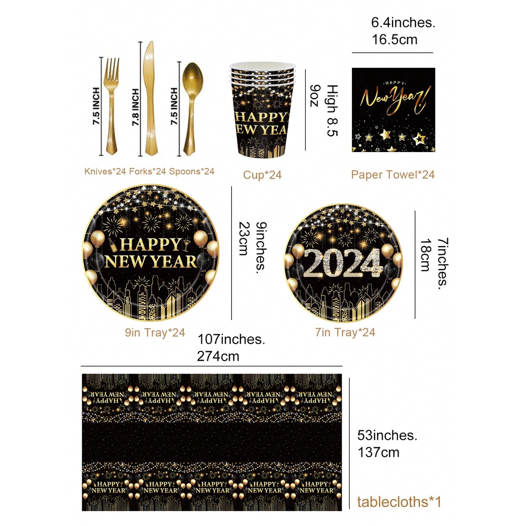 169Pcs 2024 New Year Table Decorations Dinnerware Set (24 Guest) For Home Gatherings New-Year Party Decoration SEOULGLOW