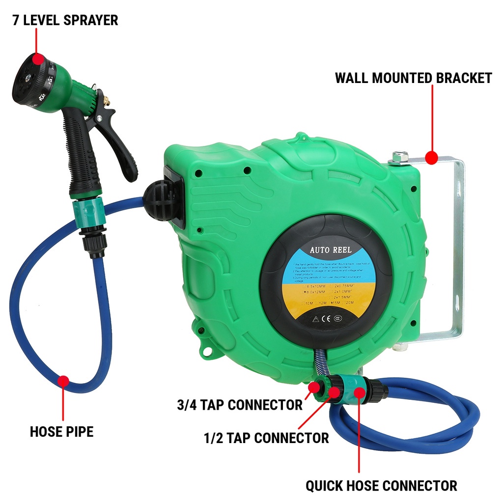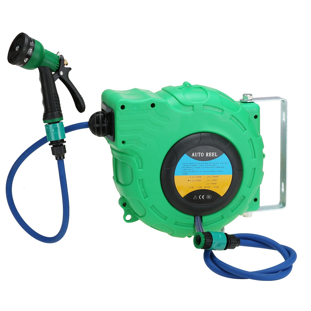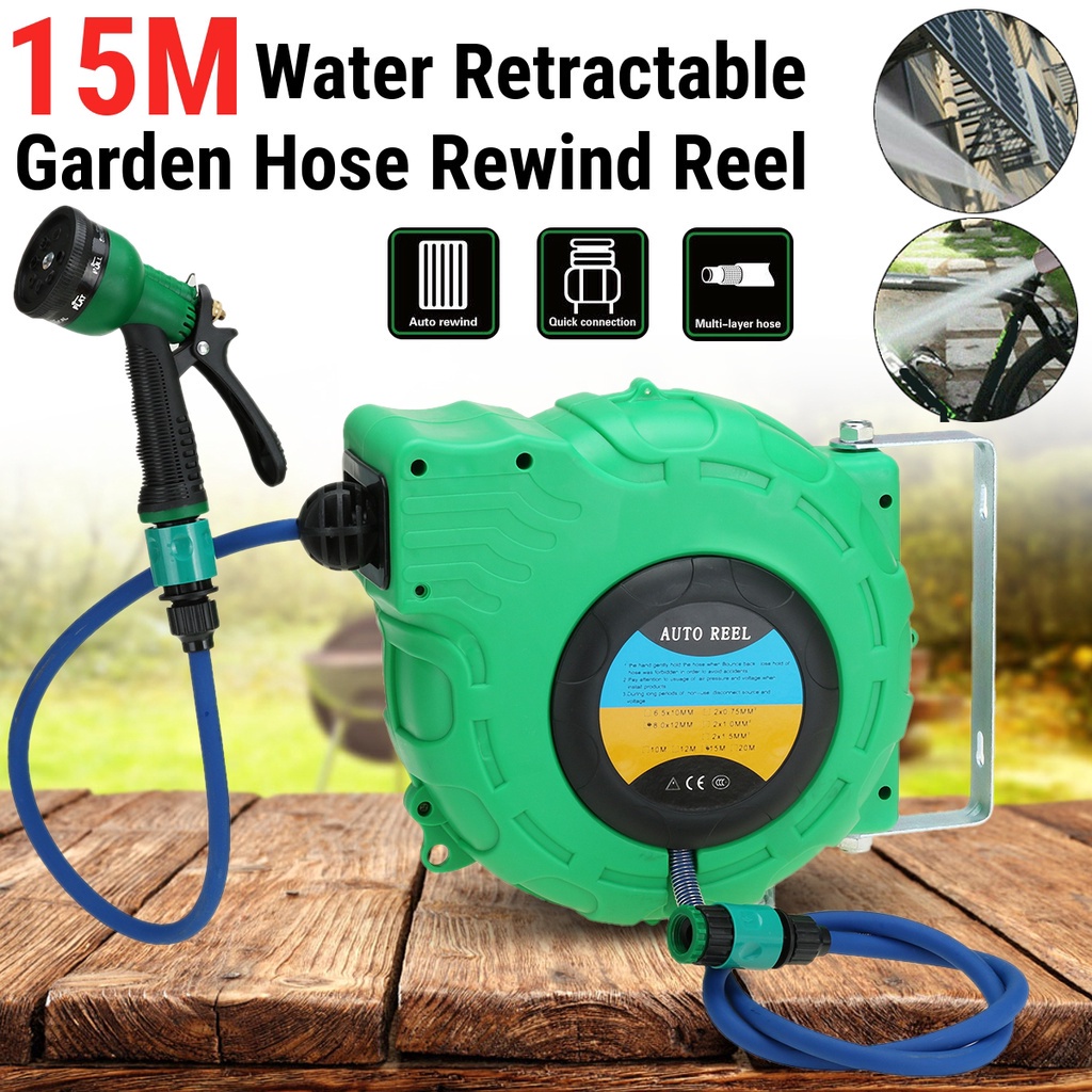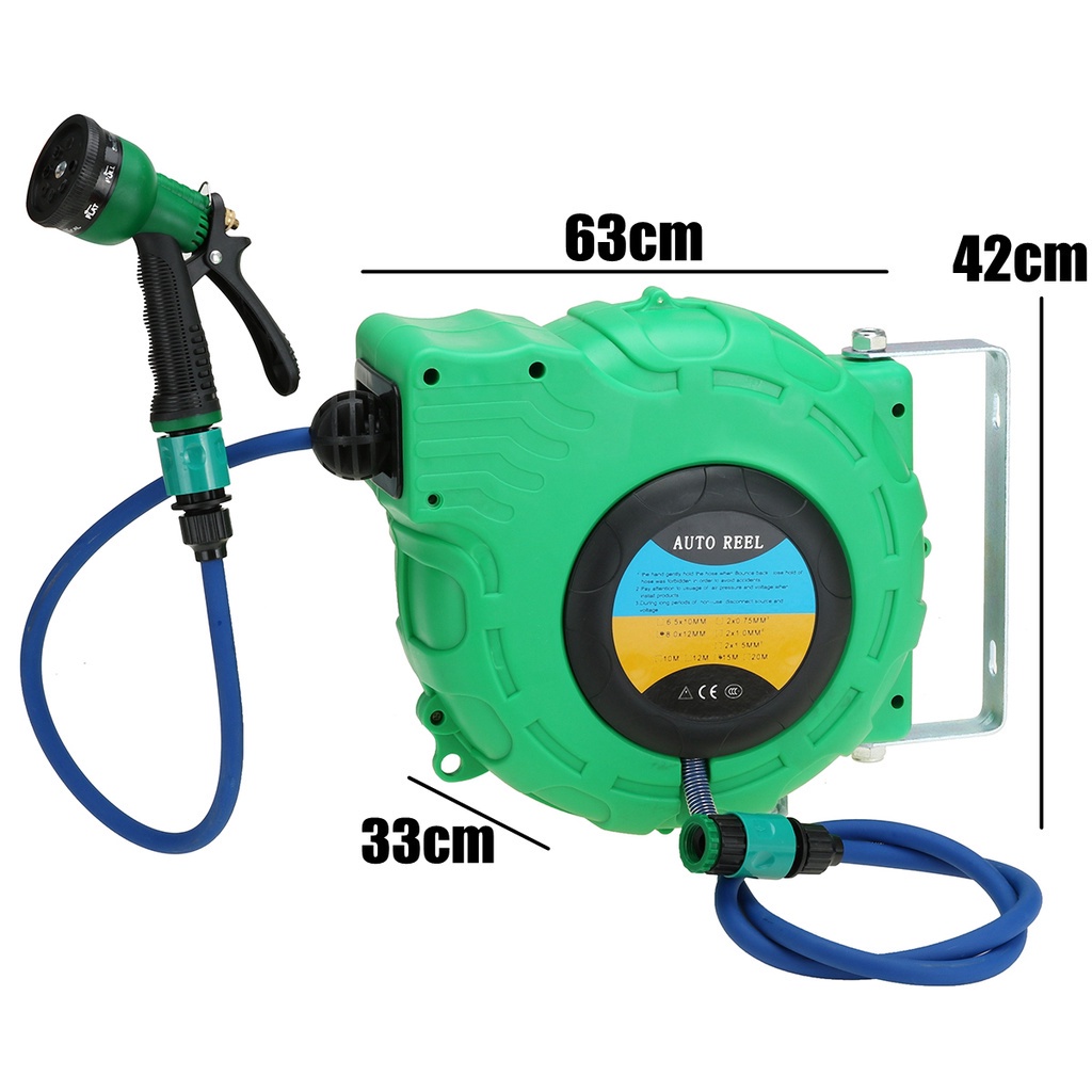 16KPA Green 16KPA Wall Mounted Automatic Reel Retractable Garden Hose Pipe Reel Water Outdoor Spray Water Garage Tool Car 8x12x15M