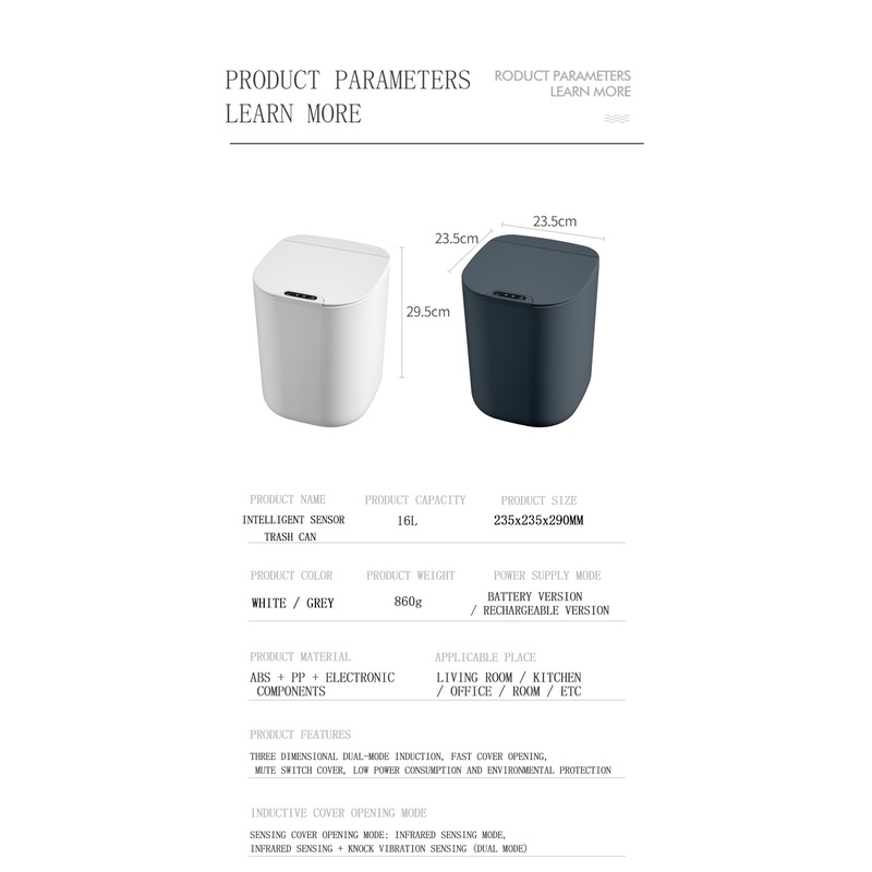 16L Rechargeable Automatic Touchless Big Volume Smart Sensor Dustbin Garbage LED Infrared Sensor Vibration Tong Sampah