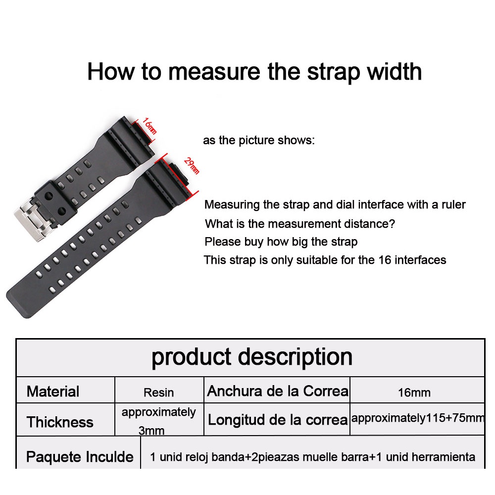 Sports strap suitable for 16mm multifunctional electronic watch GA-110GB GA-100 GD120 GA-700 resin strap