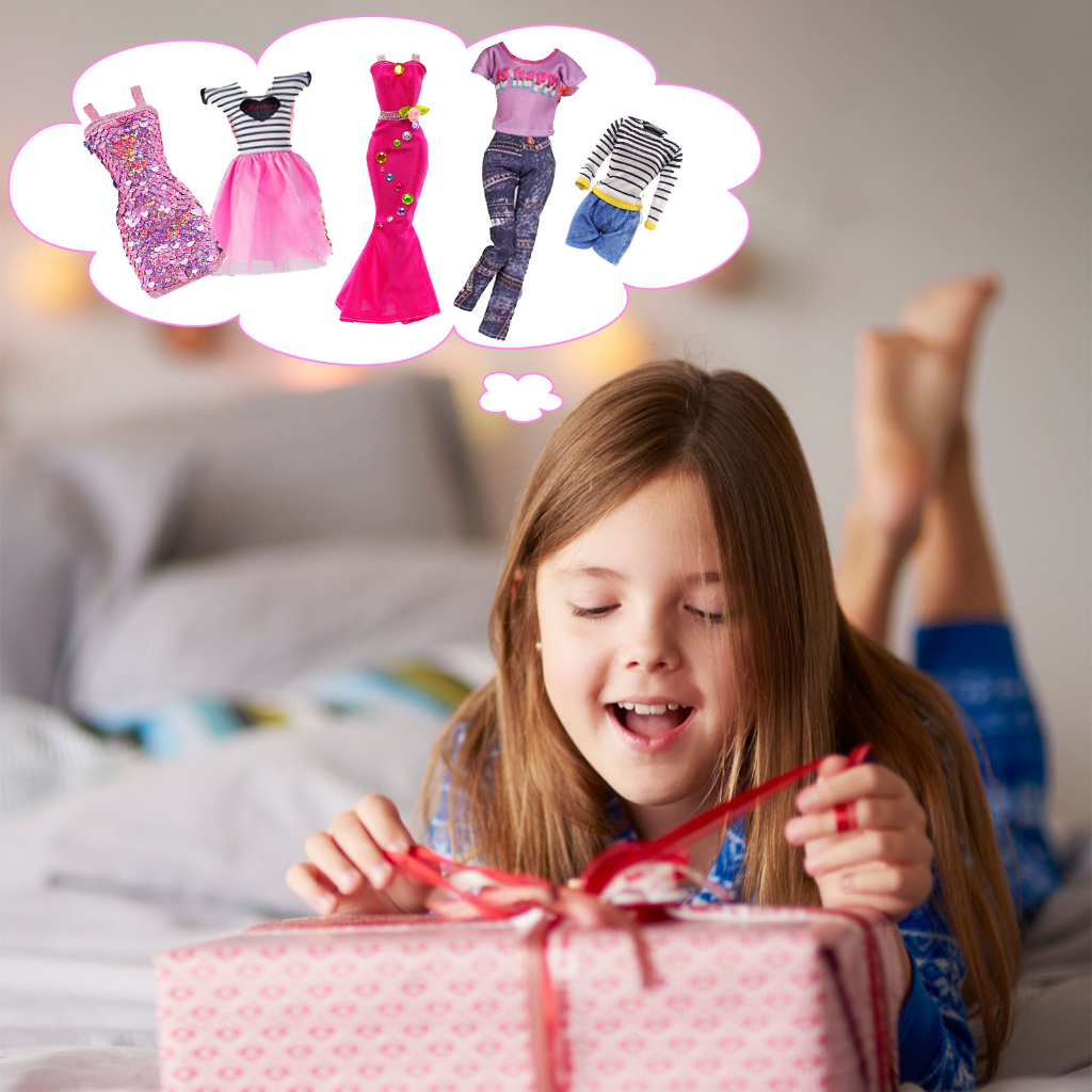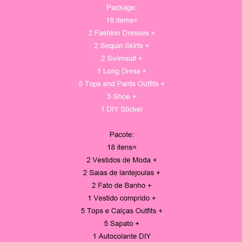 18 Pack Doll Clothes and Accessories 2 Fashion Dresses 2 Sequin Skirts 2 Swimsuit 1 Long Dress 5 Tops and Pants Outfits 5 Shoes 1 DIY Sticker For 11.5 inch Girl Doll