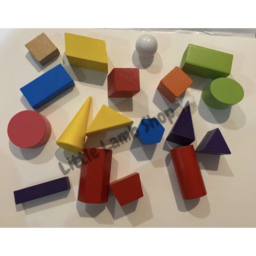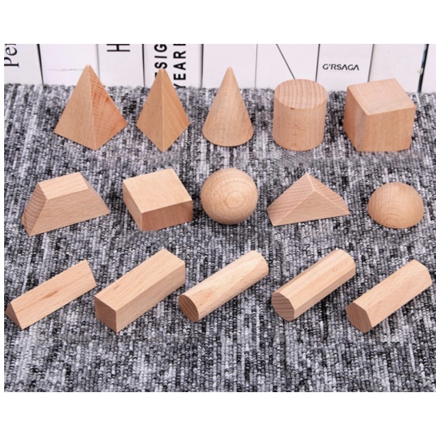 18 pcs Wooden 3D Geometry shape Solid Blocks/ Kids Learning Math/ Wooden Toy