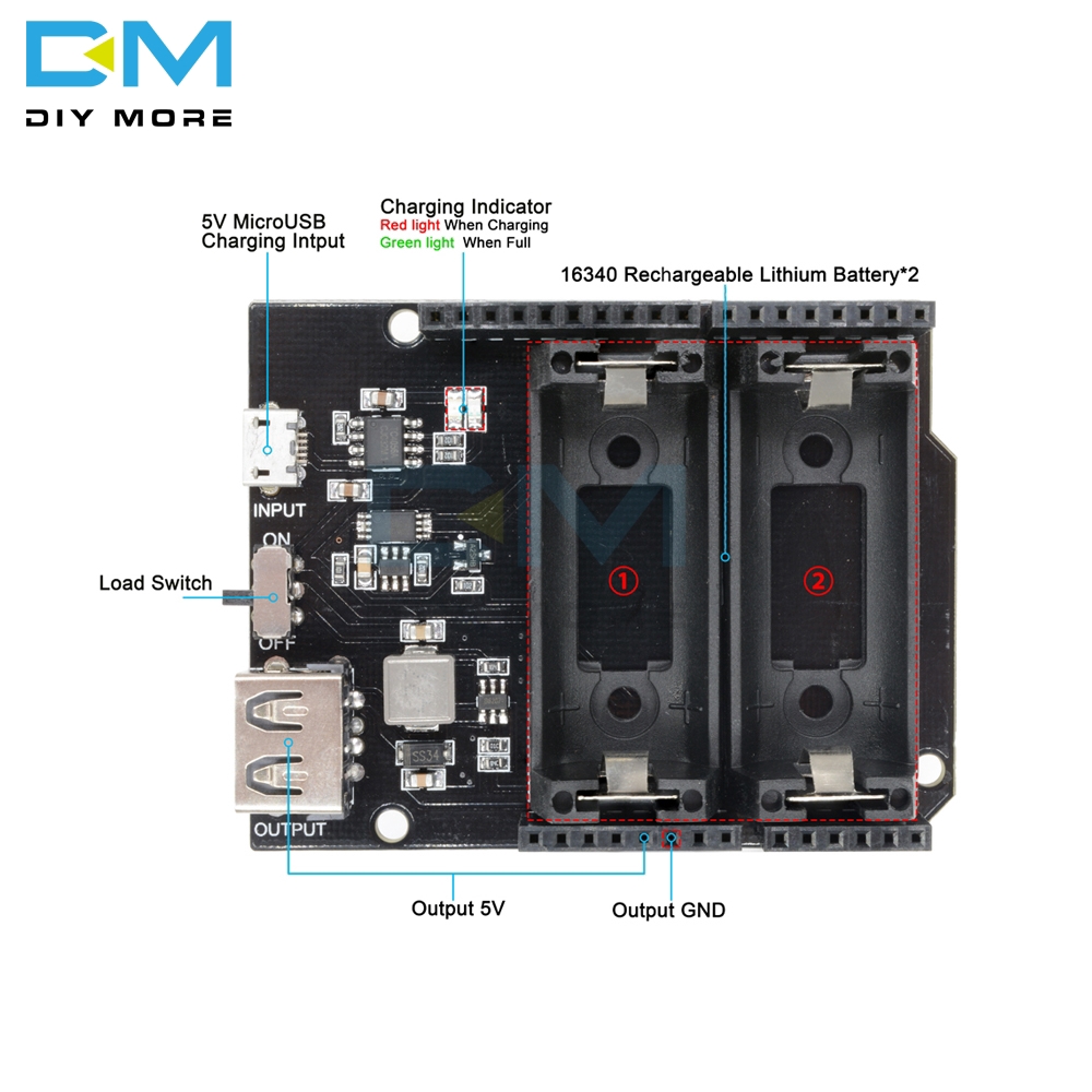18650 16340 Shield V9 V8 V3 Power Expansion Board Module 5V/3A 3V Micro USB Type-C For Arduino ESP8266