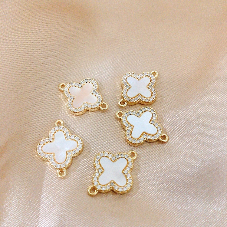 18K Gold Plated Shiny Zircon Shell Double Hanging Clover Charm Bracelet DIY Pendant Accessories
