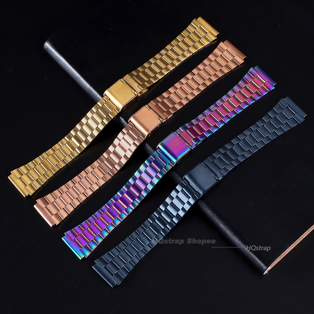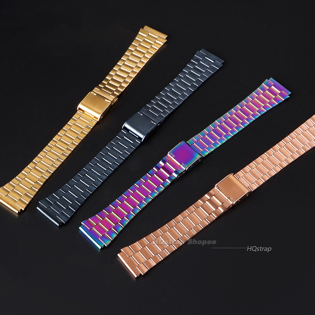 18mm Stainless Steel Straps for CASIO A158/A159/A168/A169 /B650 /AQ230 /AE500W Three Beads Metal Watchband Replacement Band Women Men Wristband Watches Accessories