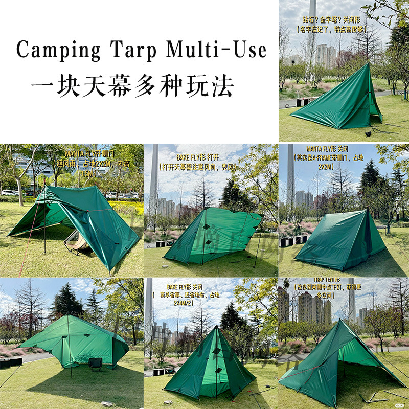 19 Hanging Points Camping Flysheet 210T Polyester Waterproof 3x4m Tent Tarp Screen Survival Sun Shelter Outdoor Backpacking 4x4 Ground Sheet 3x4 Fly Sheet 3x3 Tent Fly