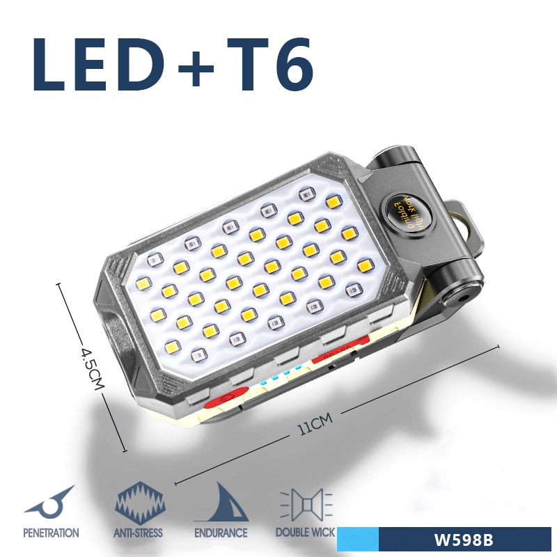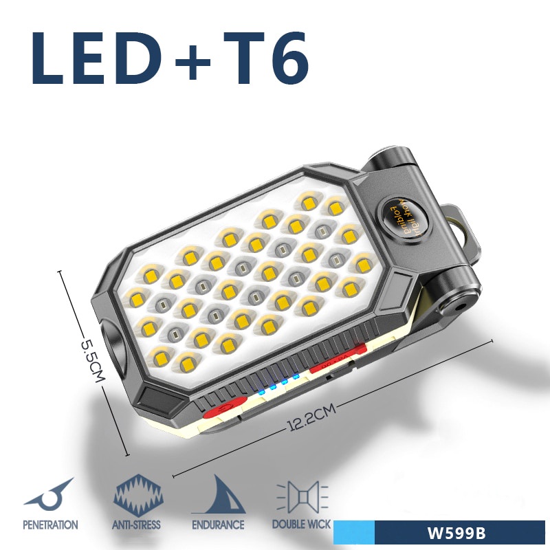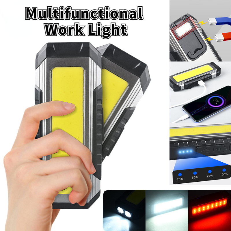 1900W USB Work Light LED Torchlight Rechargeable Portable Flashlight Display Red Blue Warning Light Magnet Camping Light