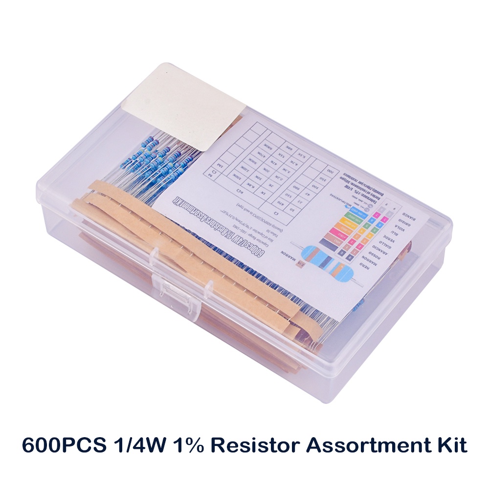 1K 10K 100K 1/4W Metal Film Resistor Kit Set Package Accuracy 1% 10R~1M Set of Resistors Electron Kit DIY Box 300PCS /600PCS