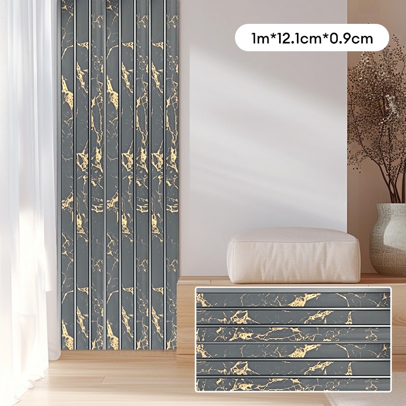 1M Wood Panel Board Grille Design PVC Background Wall Decor Sticker Waterproof Home Decoration
