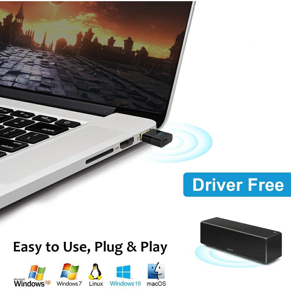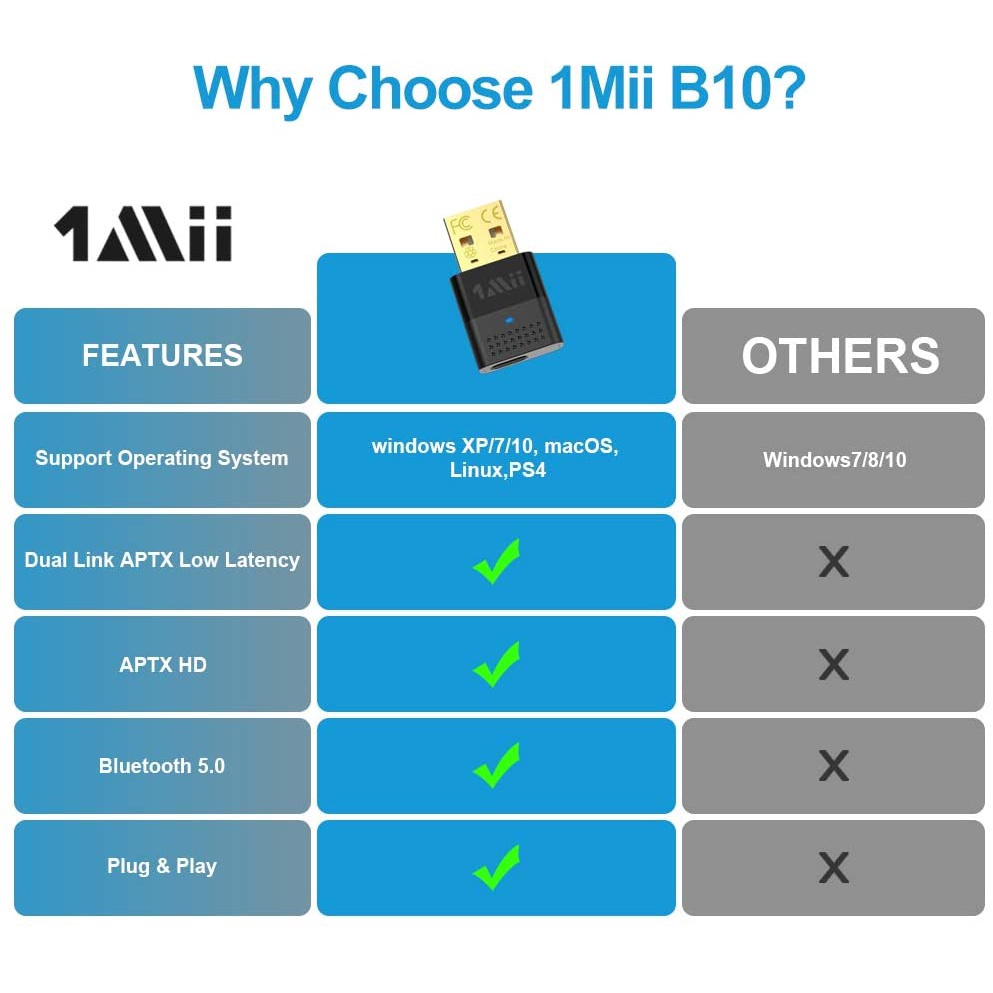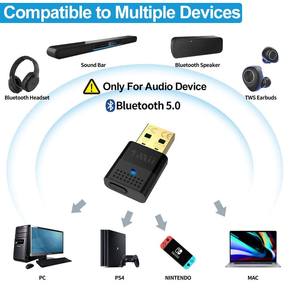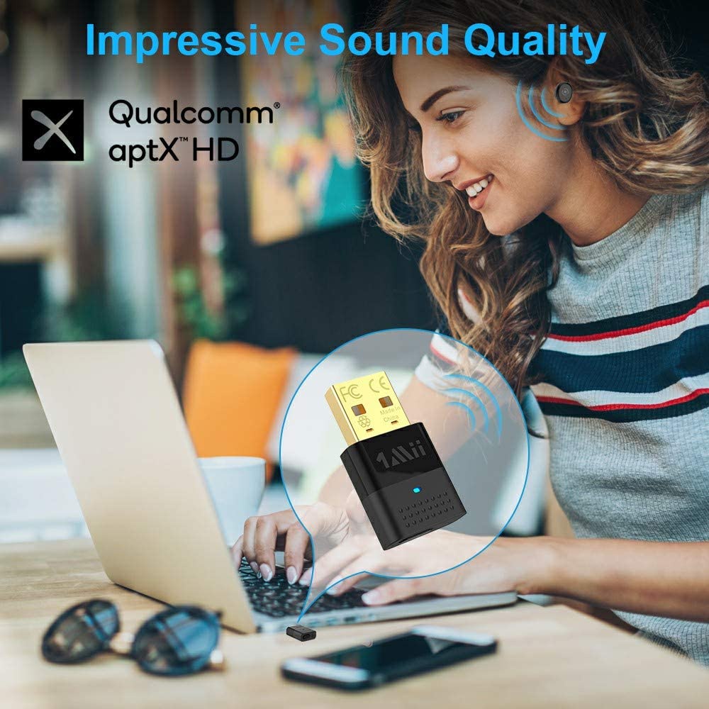 1Mii USB Bluetooth PC Adapter Bluetooth 5.0 Audio Transmitter, Dual Link USB Audio Adapter with APTX Low Latency, Blueto