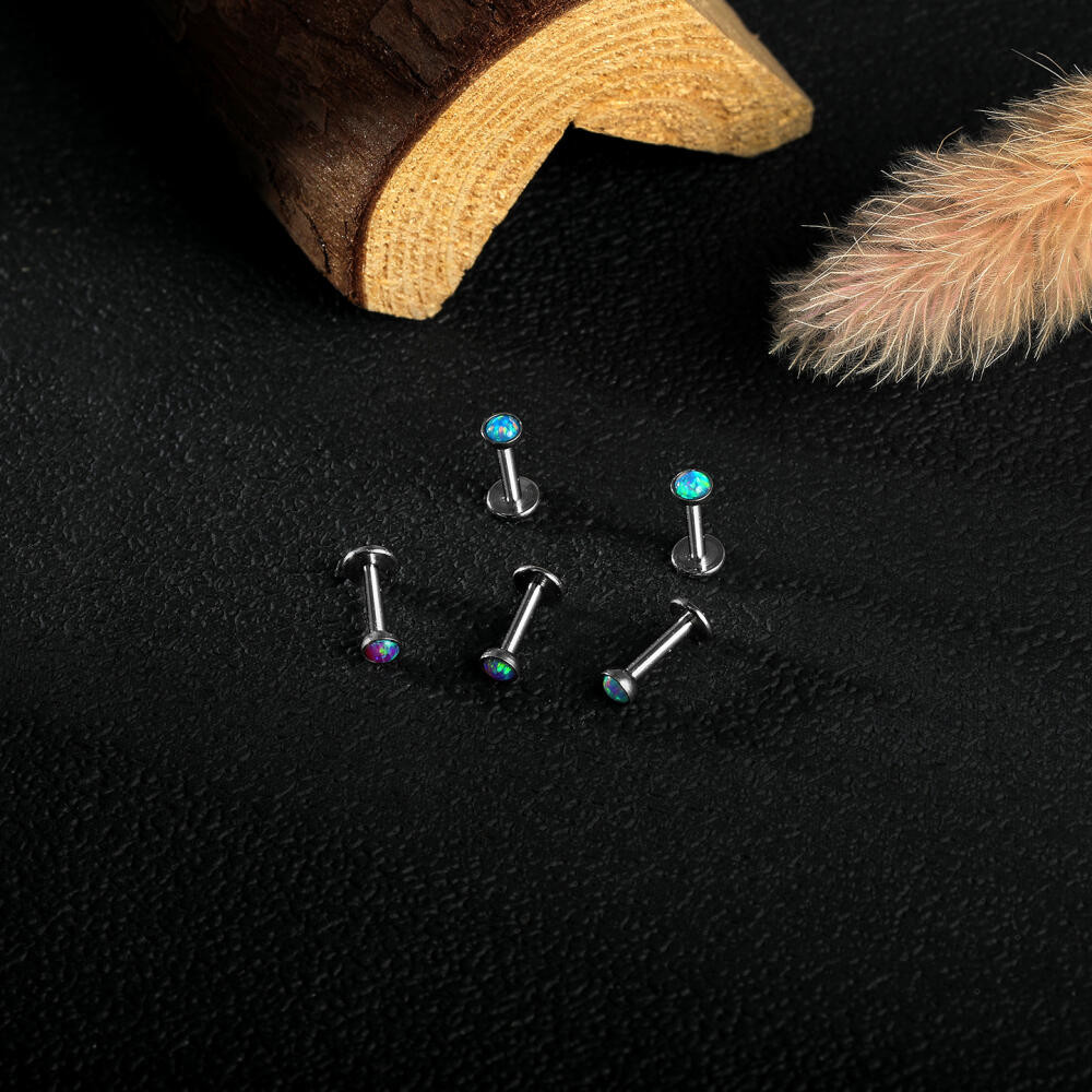1PC 16G Labret Lip Piercing Pink Blue Opal Lip Labret Piercing for Women 6/8mm Ear Studs Helix Conch Cartilage Piercing Earrings