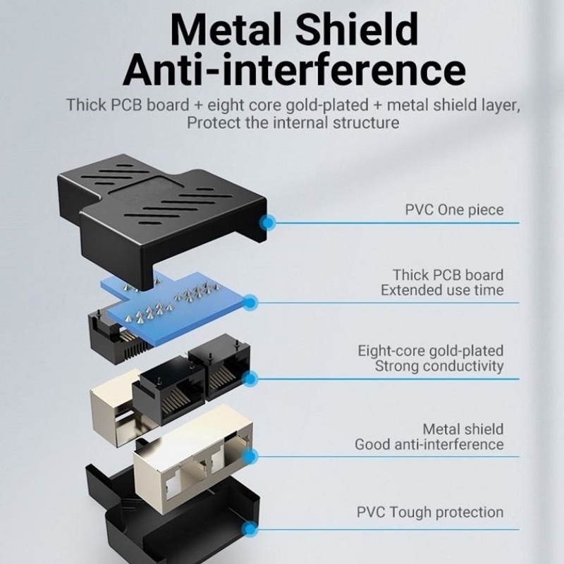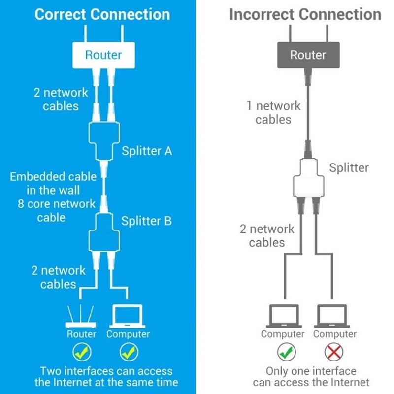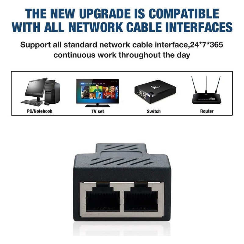 1PC RJ45 Splitter Connector Female to Female Network Adapter 1 to 2 Female Port CAT 5/CAT 6/CAT 7 Dual Socket Connector