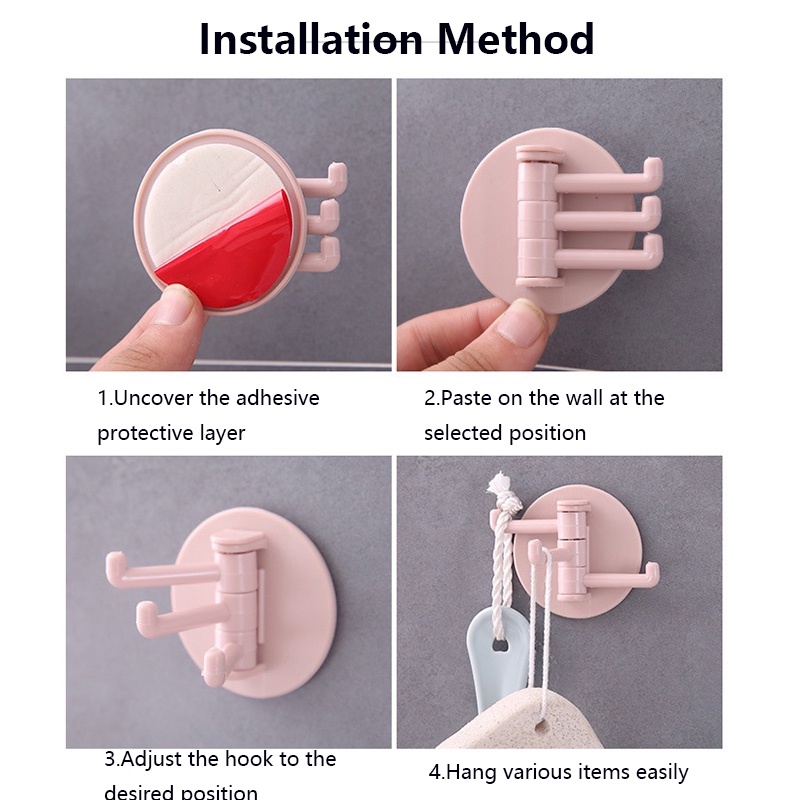 1PCS Nordic Traceless Strong Adhesive Wall Hook Seamless Paste 3 Branch Rotation Hook Kitchen Bathroom Desk Hook