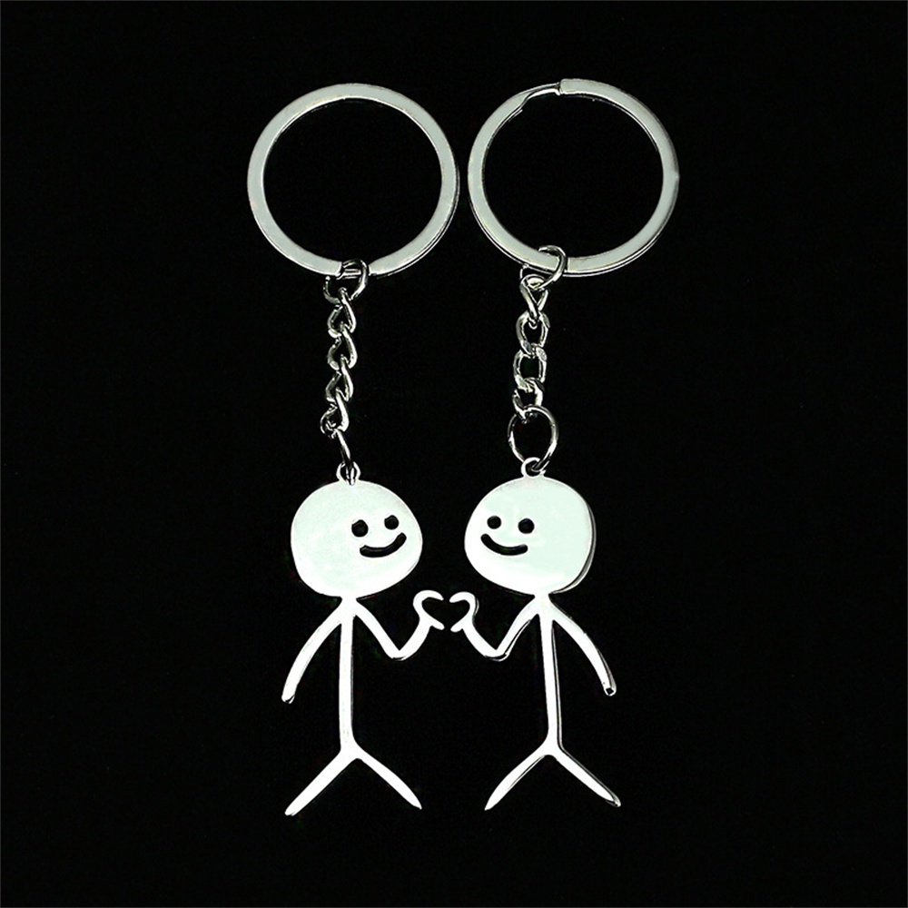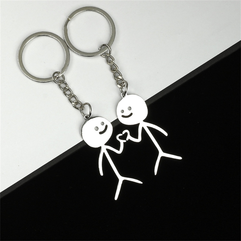 1Pair Funny Finger Heart Stickman Keychains Stainless Steel Doodle Keyring for Women Men Bag Car Keys Pendant Couple Gift
