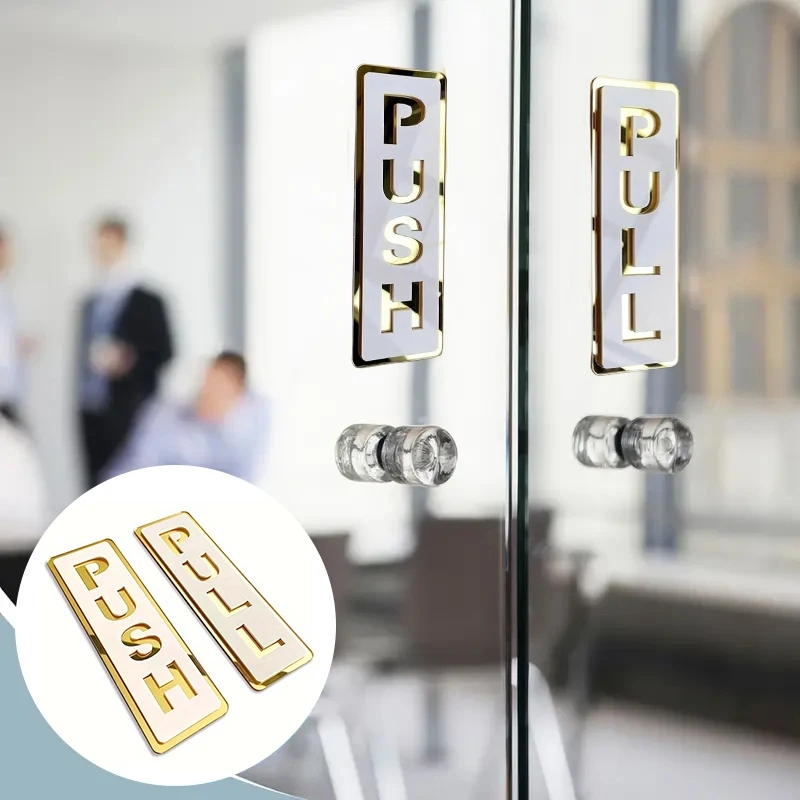 1Pair Push Pull Door Signage Acrylic Self-Adhesive Push Pull Sticker Sign For Business Mall