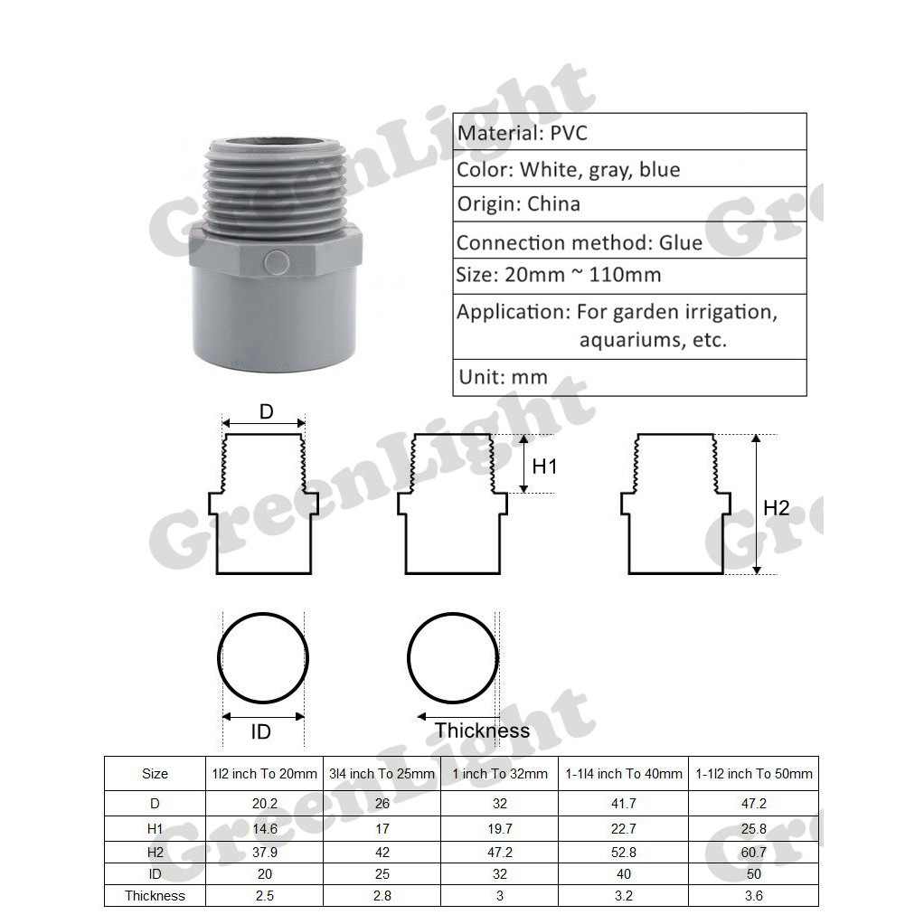 1Pc 20~50mm Male Thread PVC Connector Water Pipe Adapter Garden Irrigation Aquarium Tube Parts