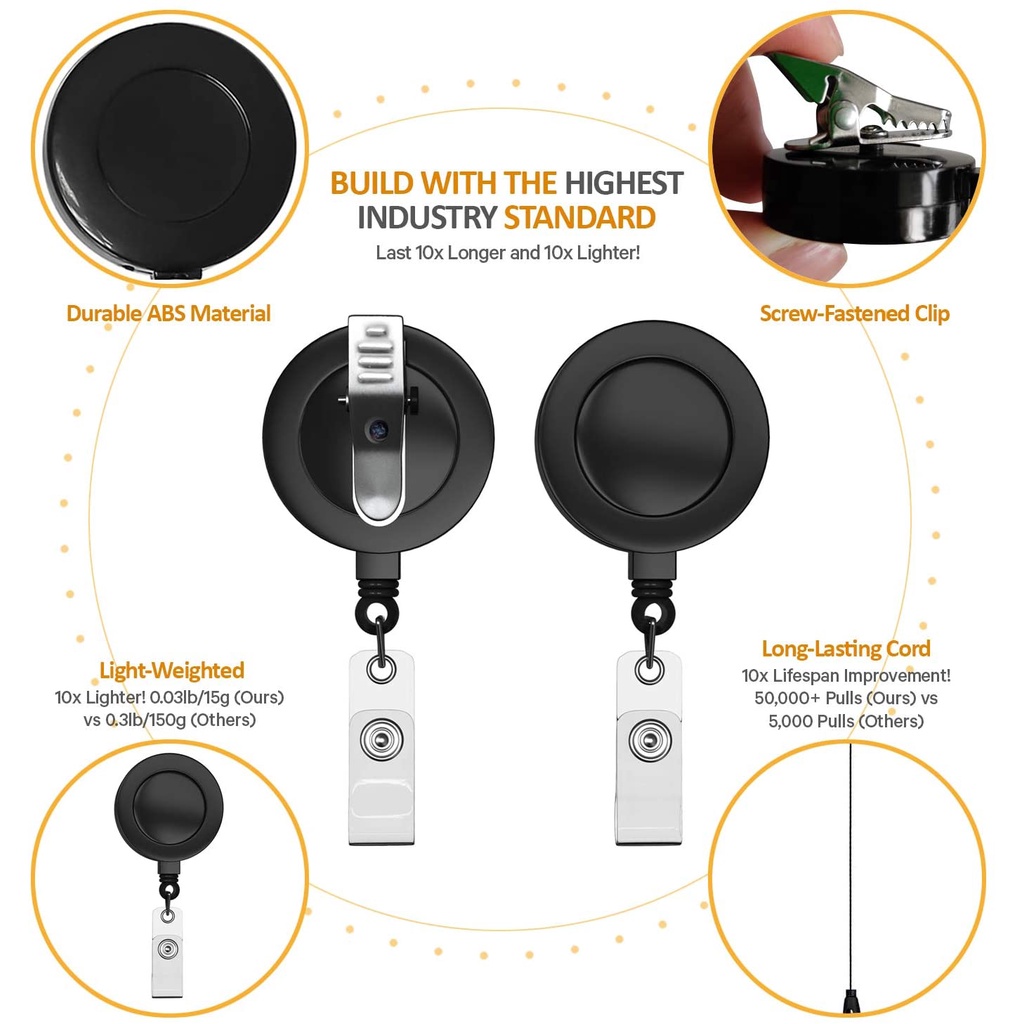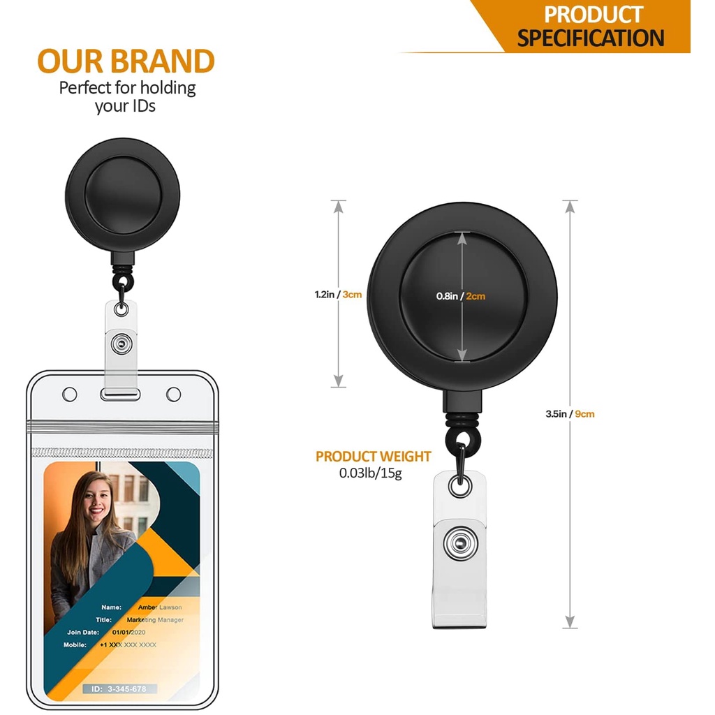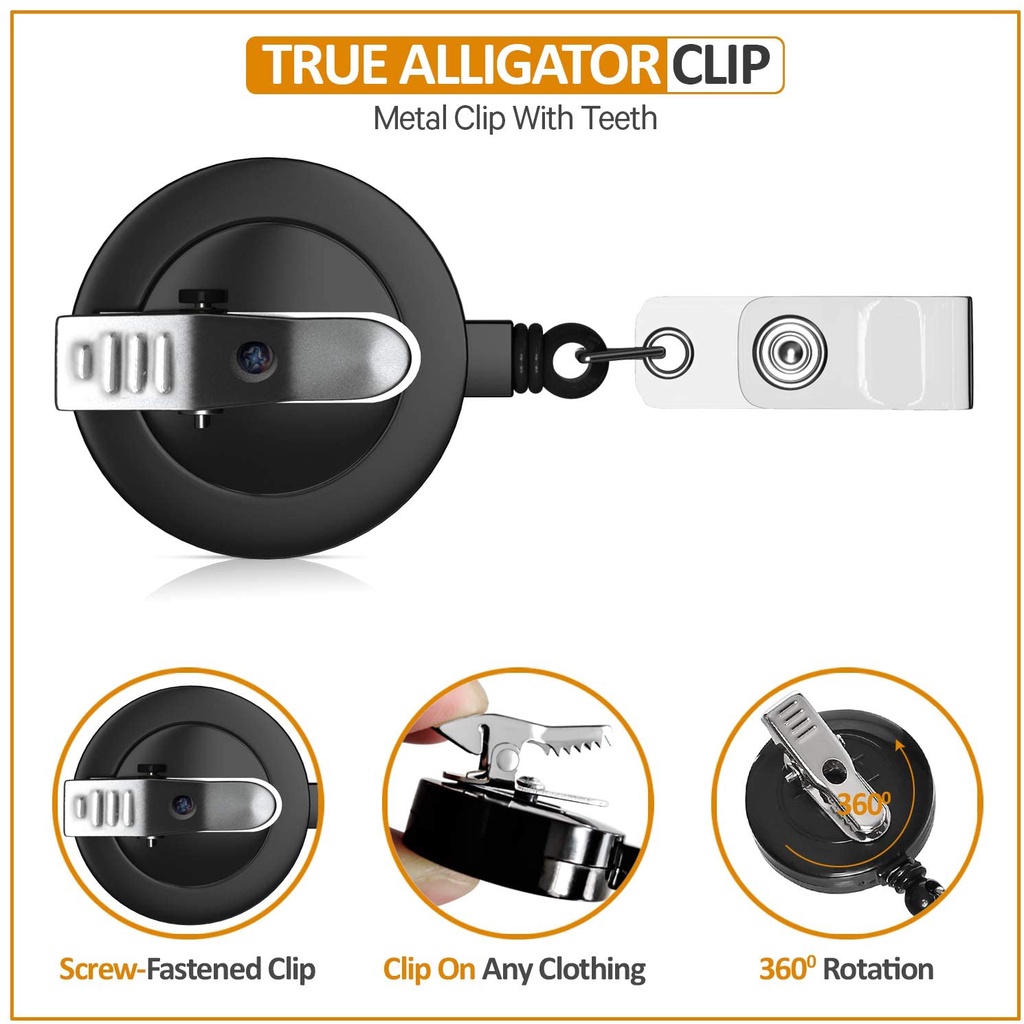 1Pc Badge Reels Retractable with Swivel Alligator Clip - Durable ID Badge Clips
