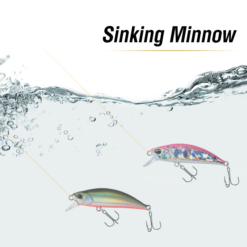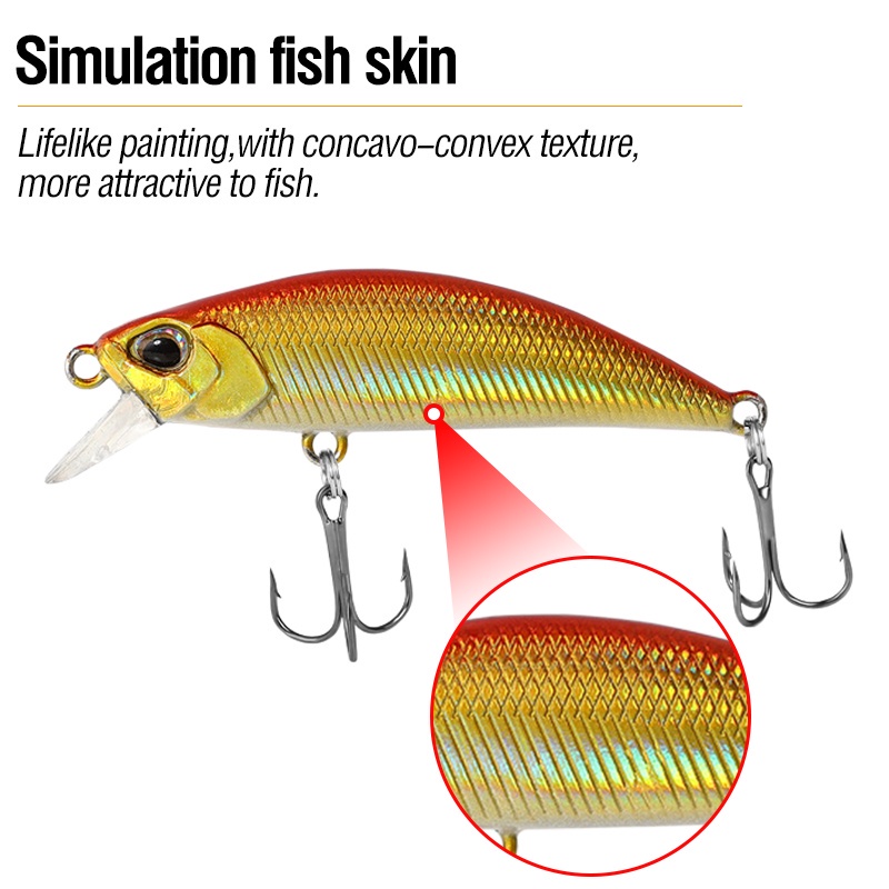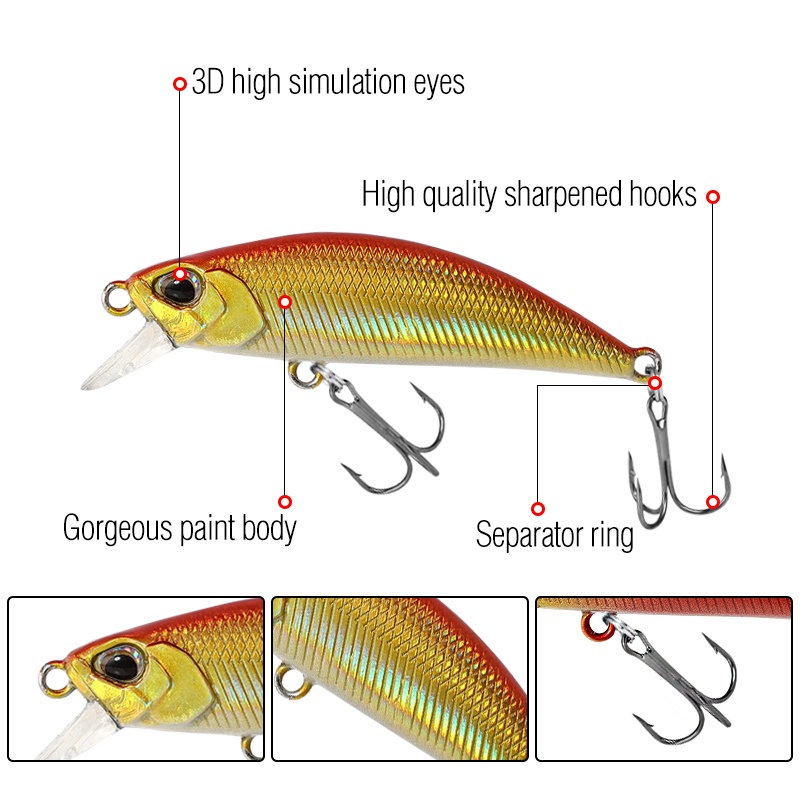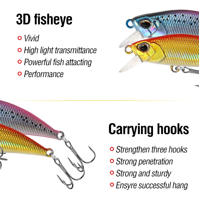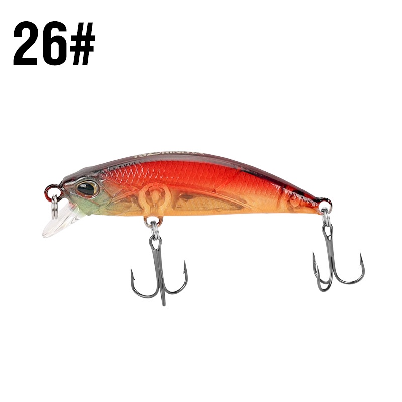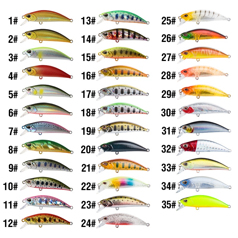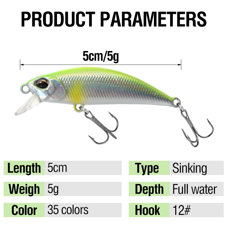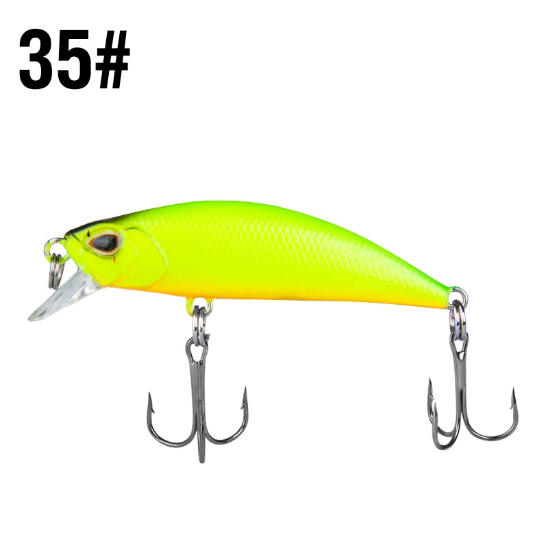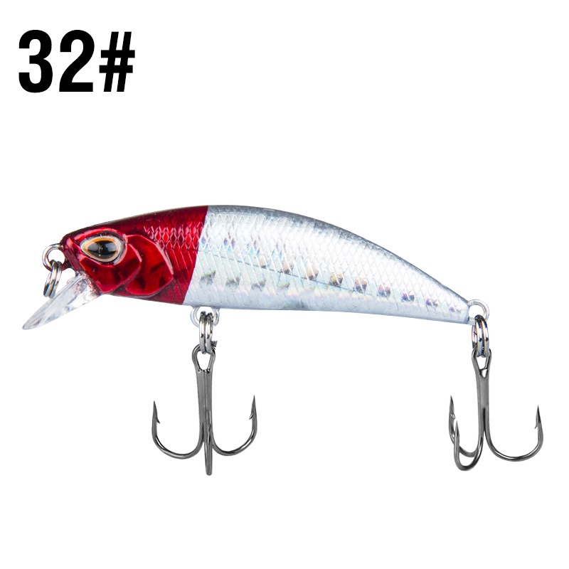 1Pcs 35 Colors Fishing Lure 5g/5cm Sinking Minnow 3D Eyes Laser Trolling Plastic Buzz Bait Lure With 2 Trible Hook