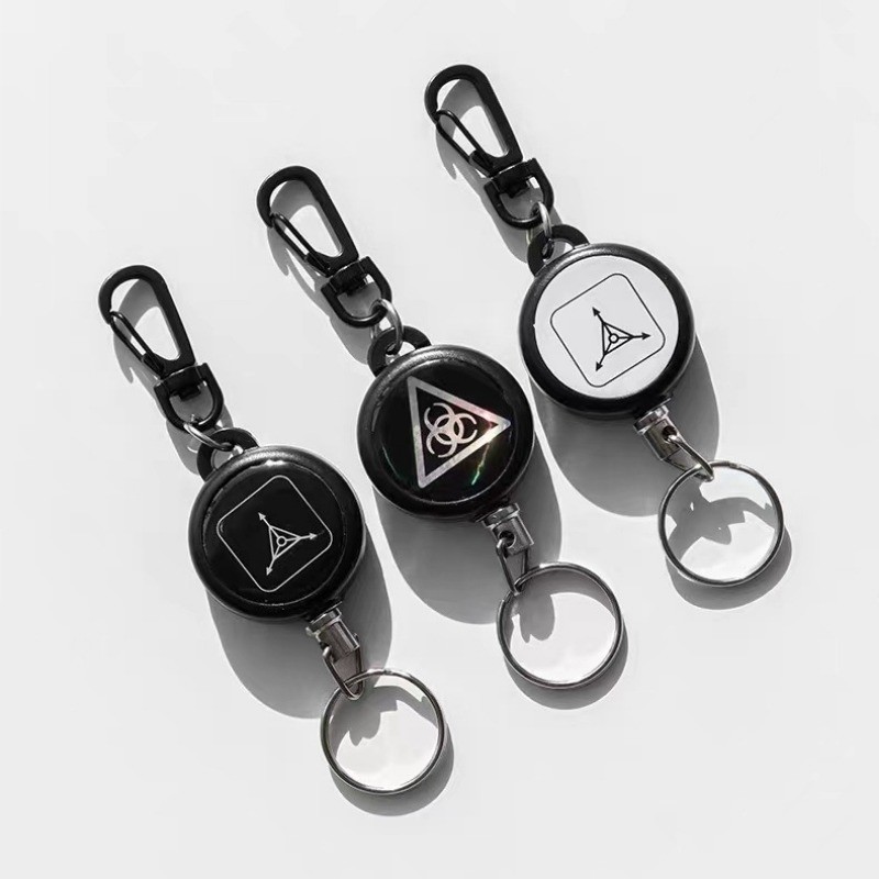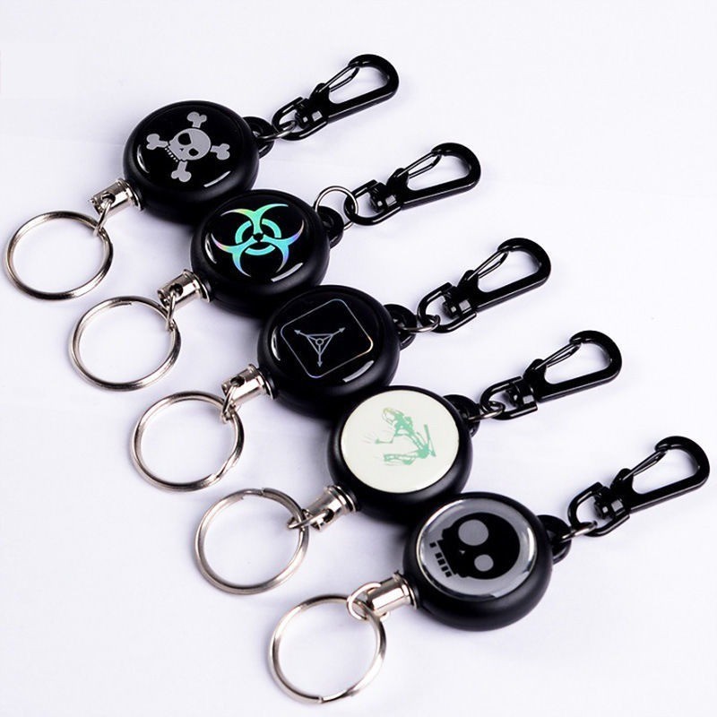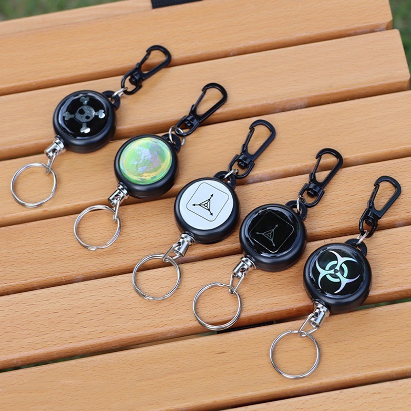 1Pcs Anti-Lost Metal Easy To Pull Buckle Keychain Retractable Double Sided Pattern Key Ring for Men Outdoors key Accessories