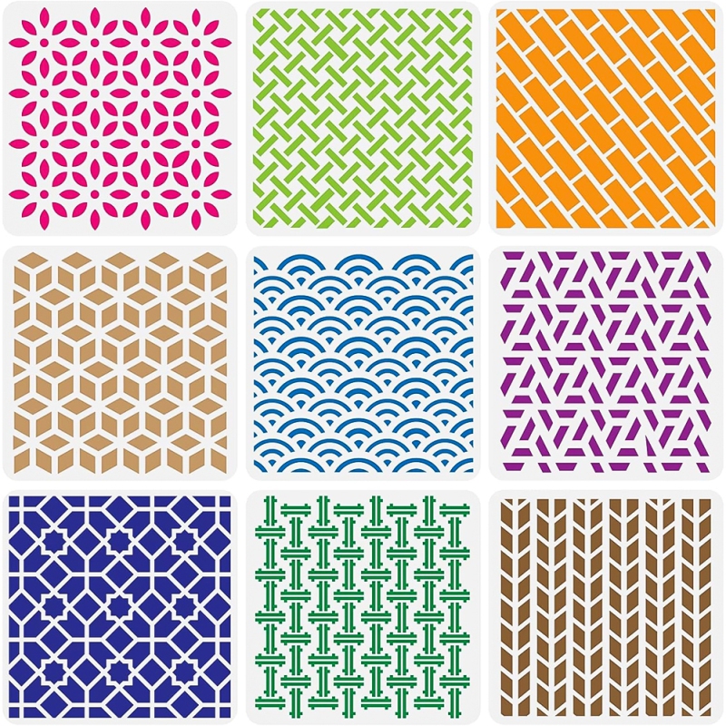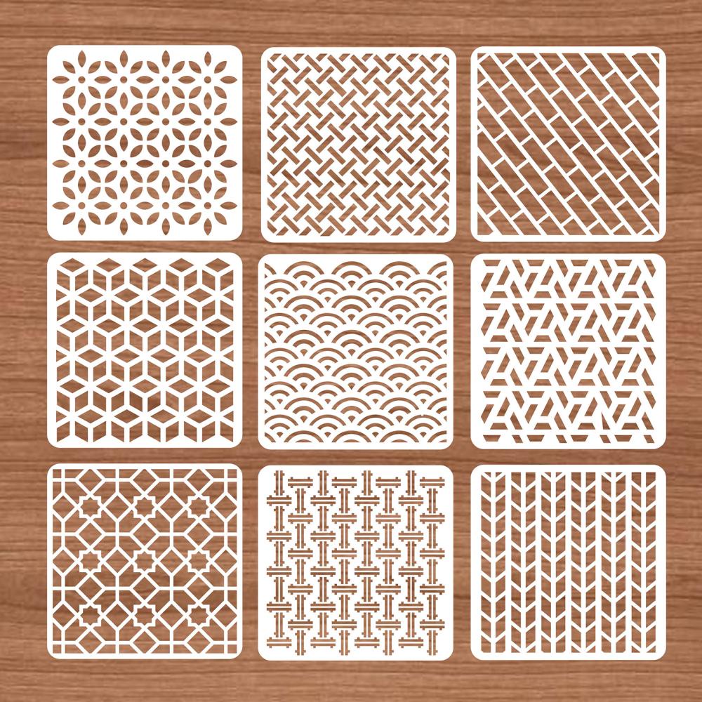 1Set Large Plastic Reusable Drawing Painting Stencils Templates for Painting on Scrapbook Fabric Tiles Floor Furniture Wood Square Geometric Pattern 300x300mm