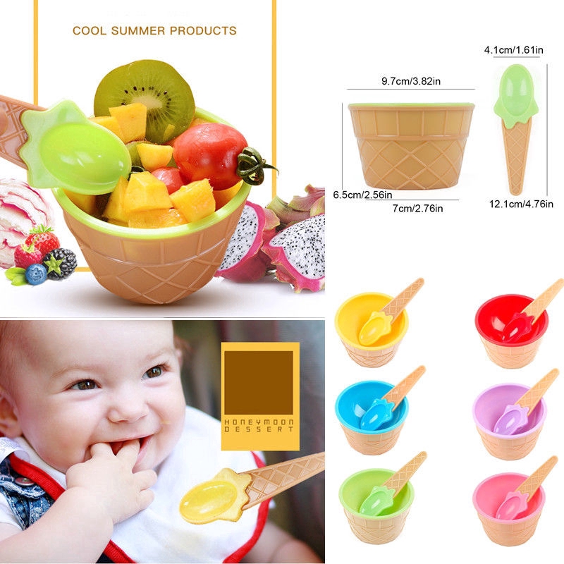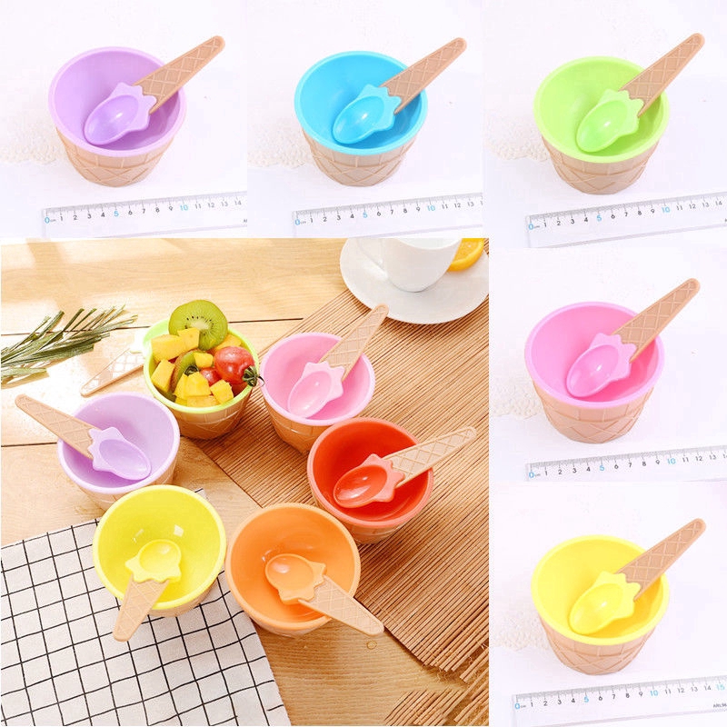 1Set New Kids Ice Cream Bowl Spoon Set Durable Children Gifts Lovely Dessert Bowl DIY Ice Cream Tools Icecream Bowl+spoon