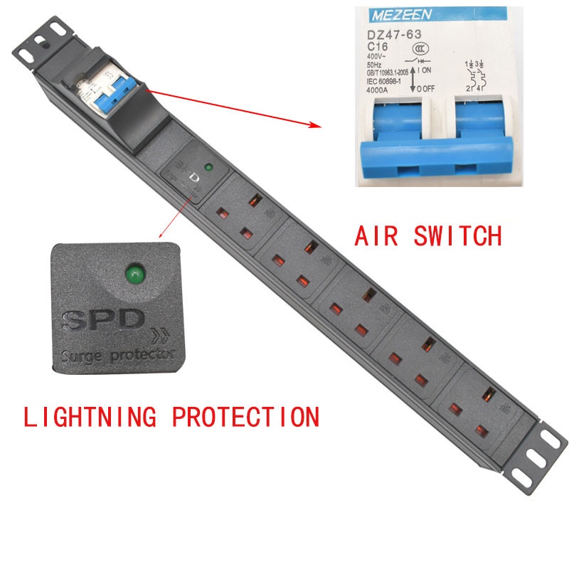 1U 19 "rack mounted 19 inch PDU power distribution unit UK socket 5/6/7 way rack mounted for cabinet UK 3PIN plug