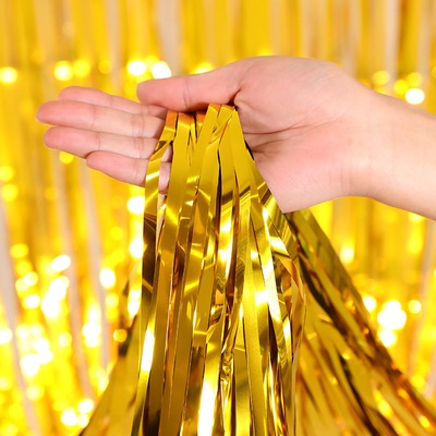 1X2Meters/Foil Curtain Fringe Curtain Tinsel String Shiny Gold Foil Metallic Curtain Backdrop Birthday Decoration