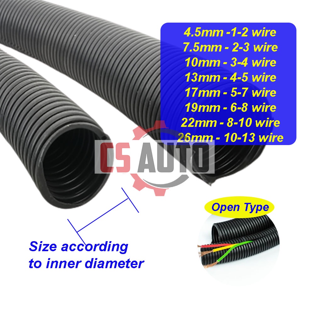1m x Car Wire Hose Flexible Tubing Cable Split Loom Lorry Motor Protect Pelindung Wayar Balut Wiring Terbuka (1 meter)