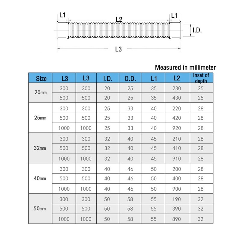 1pc 20/25/32/40/50mm Fish Tank Hose 0.3/0.5/1m Length EVA Corrugated Pipe for Water Pump Connection Any Bending