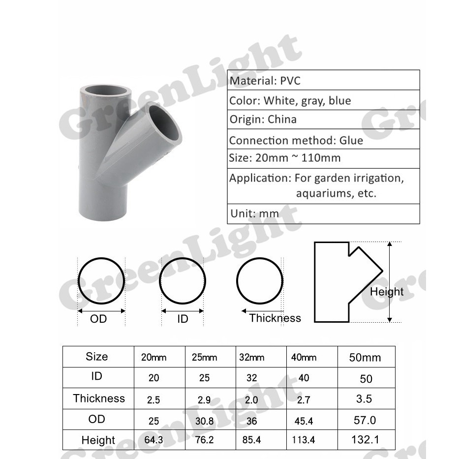 1pc 20/25/32/40mm PVC Pipe Y Tee Connector Garden Irrigation Aquarium Fish Tank Tube Adapter Fittings Water Pipe Joints