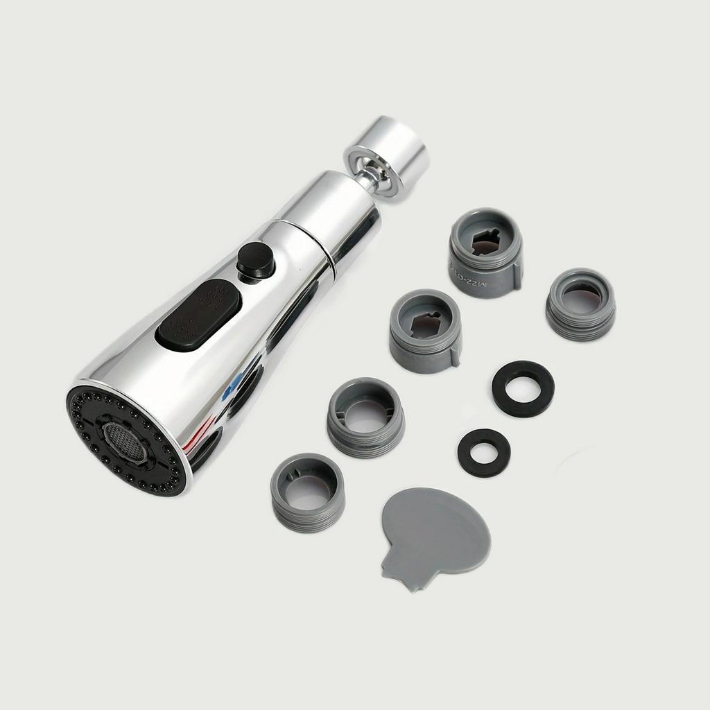 3 Function Kitchen Sink Faucet Head Replacement 360° Rotating Sprayer Nozzle with 5 Adapters