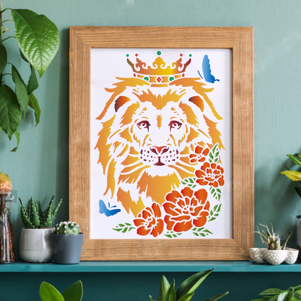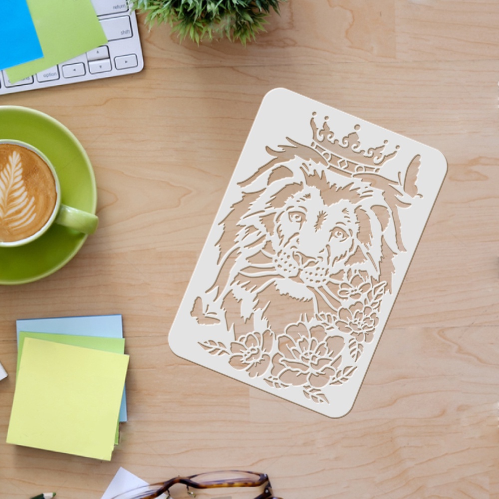1pc Lion Head Stencil Template 29.7x21cm African Big Cat Wild Animal Reusable Drawing Painting Stencil for Painting on Wood Furniture Walls Crafts DIY Paper and Fabric