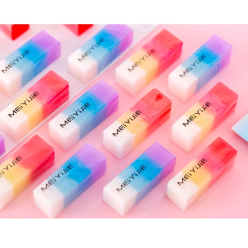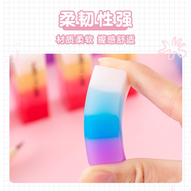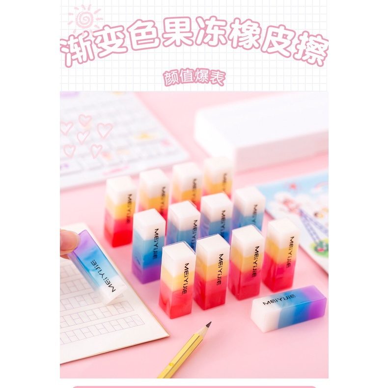 1pcs Gradient Color Jelly Square Student Eraser Student Creative RubberPencil Eraser Cartoon Eraser School Office Stationery