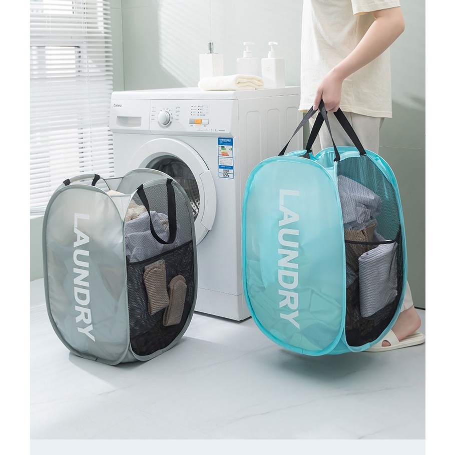 ONE PC Mesh Pop-Up Laundry Hamper Breathable, Collapsible, Space-Saving Basket for Dorm, Travel, Bathroom Laundry Net for Clothes