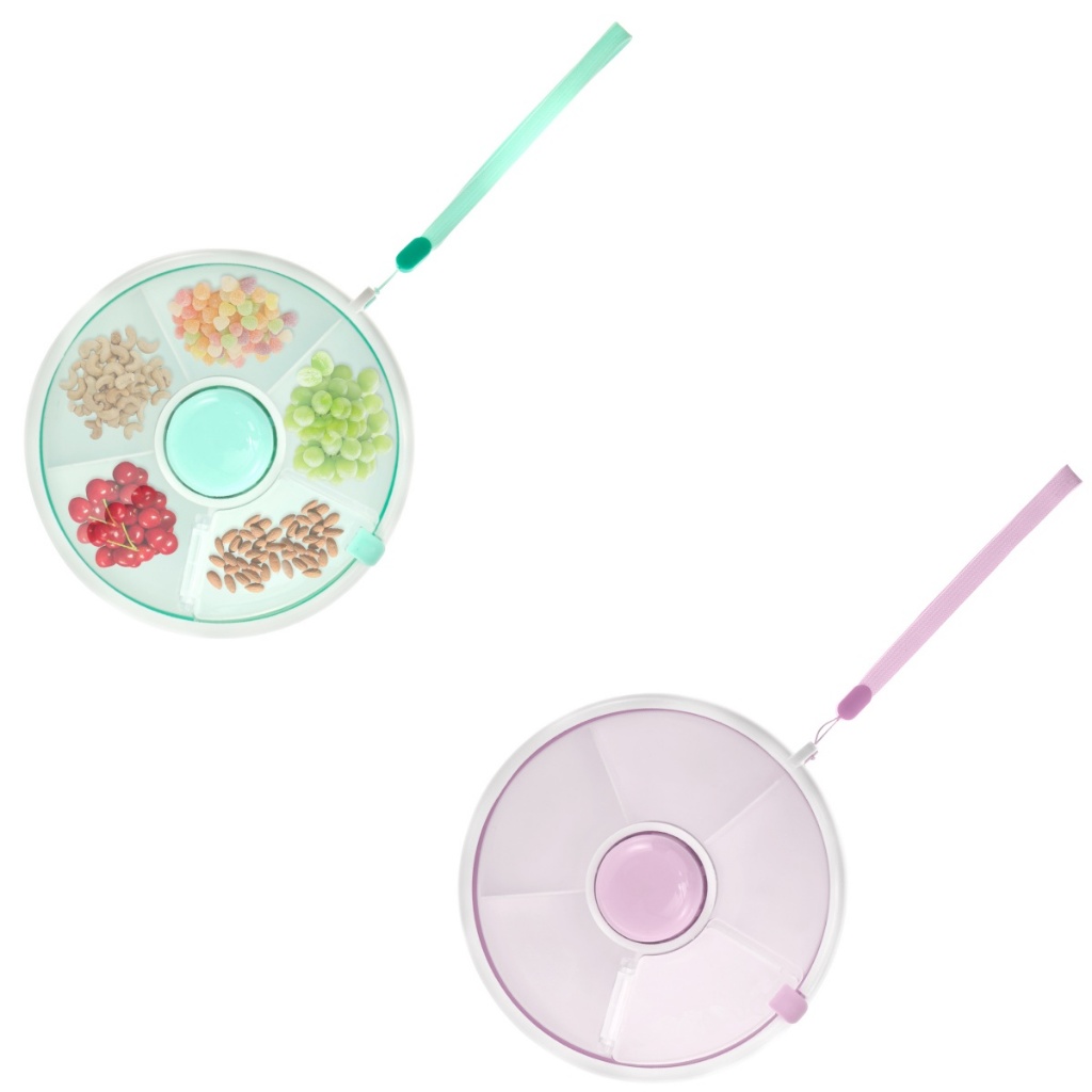 2/1pcs Kids Snack Spinner Toddler Spinner Snack Box with 5 Compartments and Lid Portable Snack Serving Tray Divided Kids Snack Container Round Compartment Food Box for Snack SHOPQJC8026